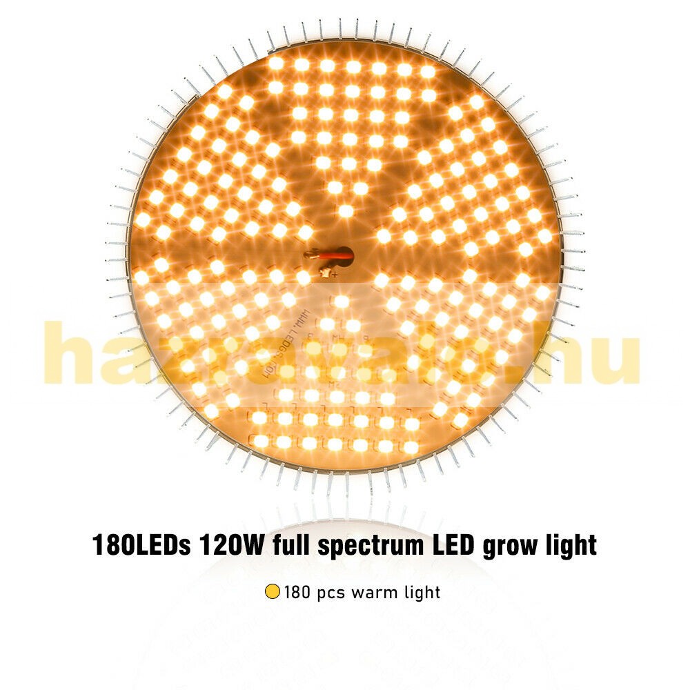 Ez a 120W-os izzó 180 LED-el szerelt, hasonló fényt bocsát ki a napéhoz, így ezt a növények nagy hatékonysággal nyelik el, ezáltal elősegíti a fotoszintézist, növeli a növekedés ütemét a növekedés teljes szakaszában.
