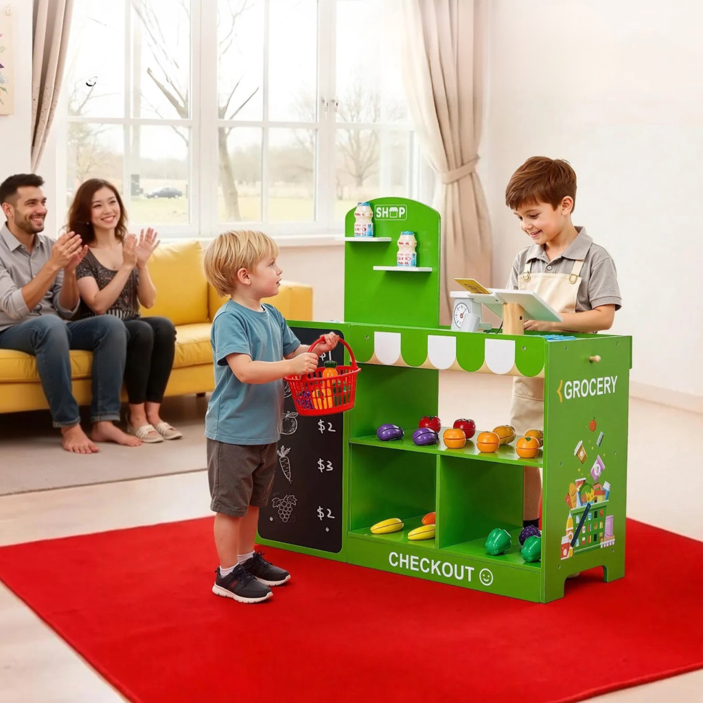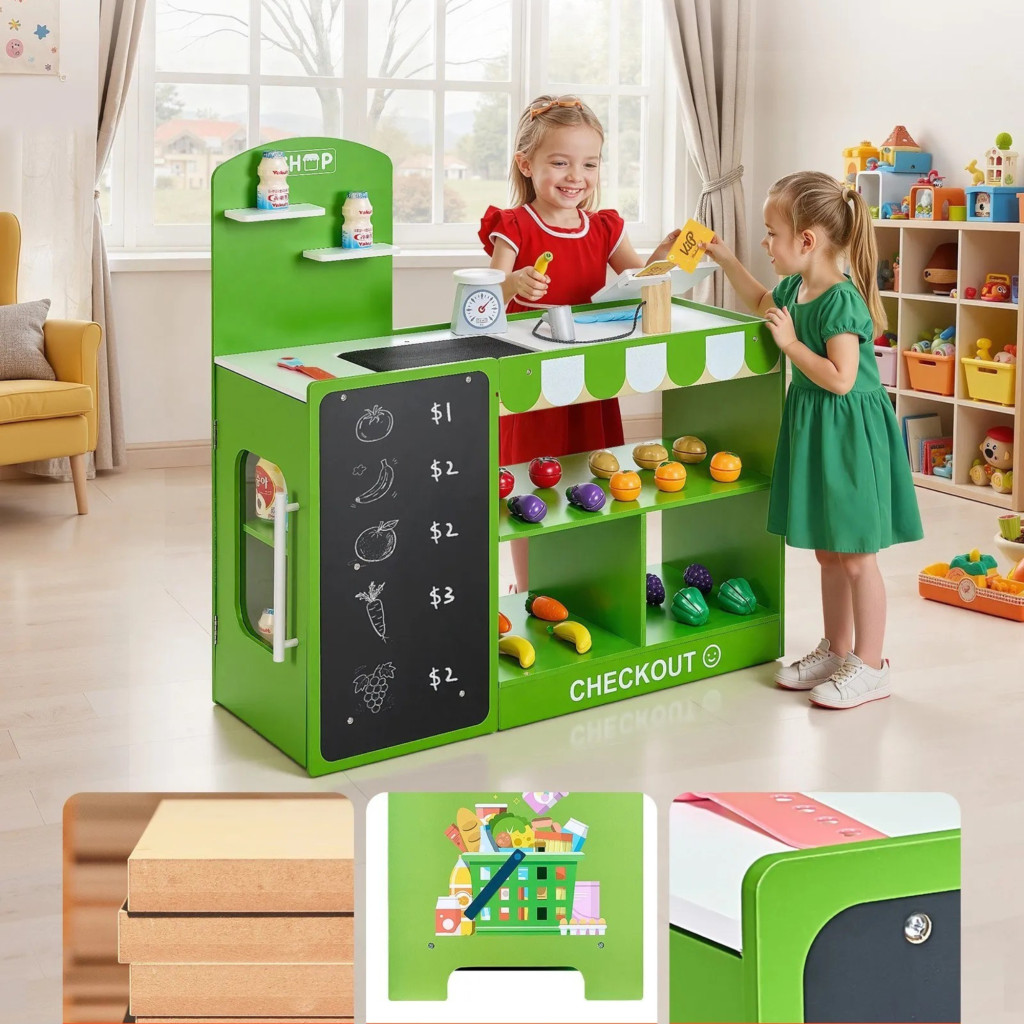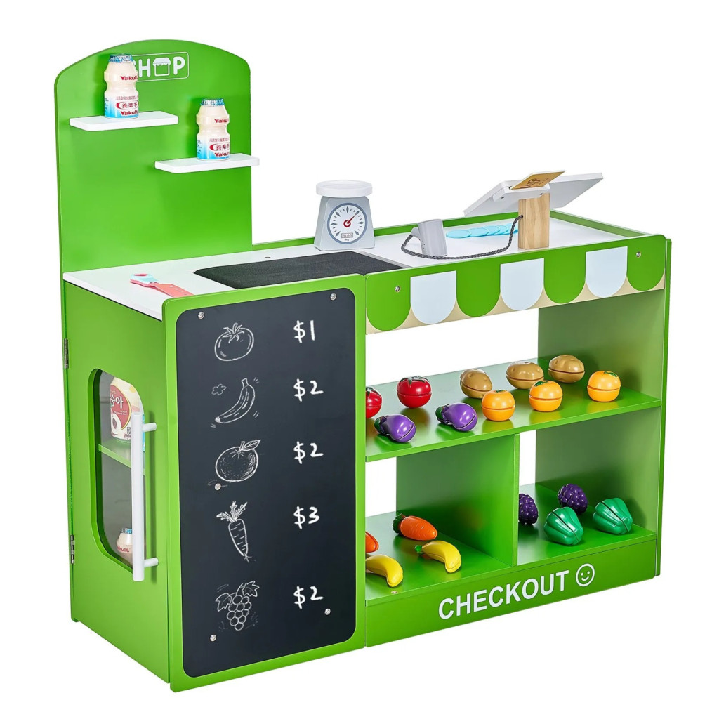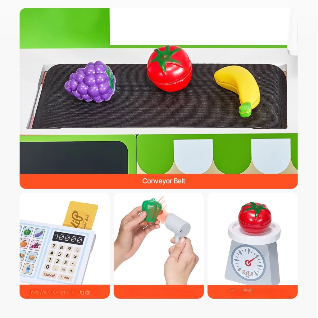 Ez a gyerek szupermarket játék lehetőséget ad arra, hogy gyermeke több szerepben is kipróbálja magát: