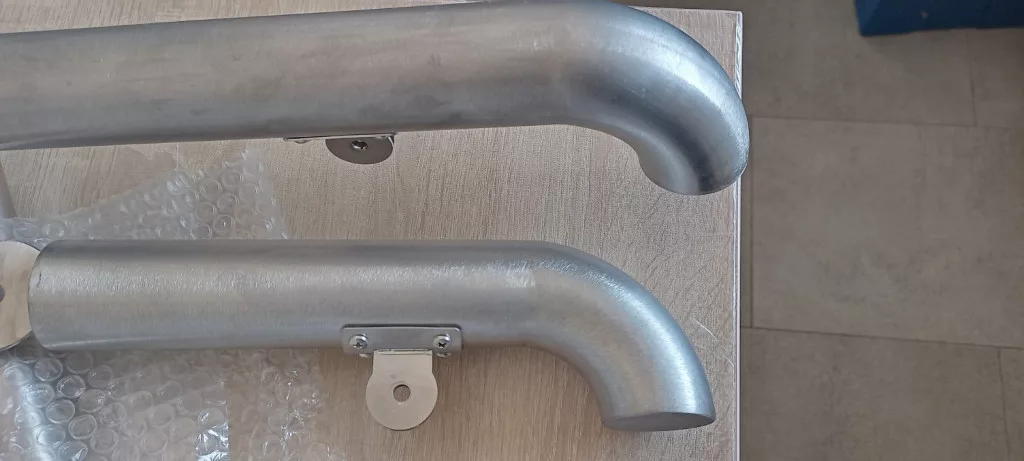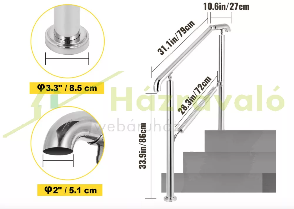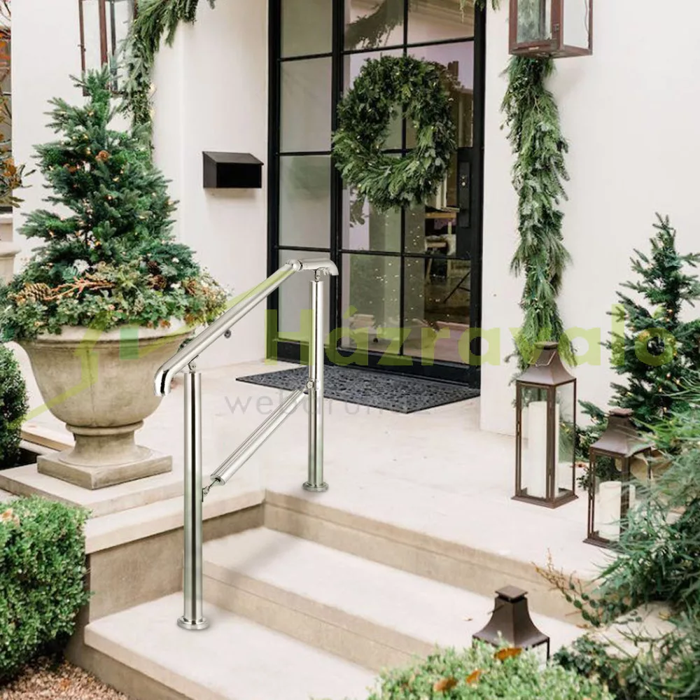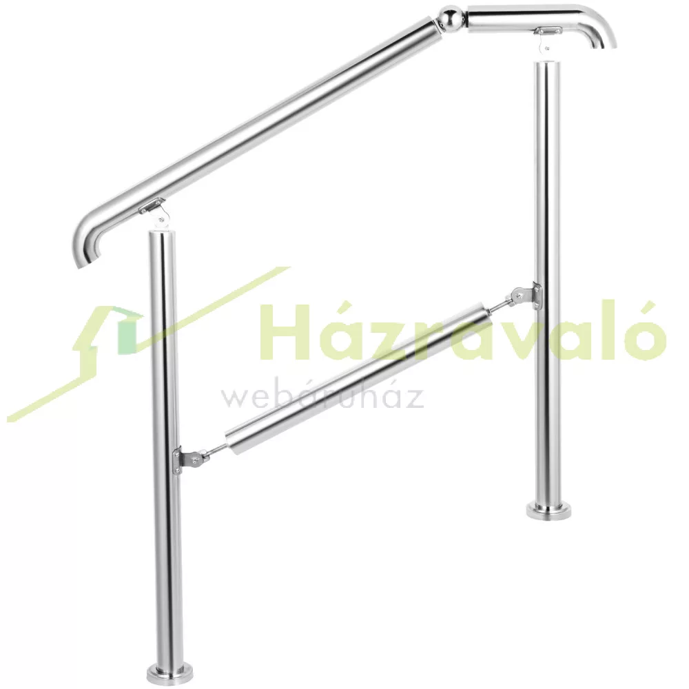 ESZTÉTIKAI HIBÁS! Lépcsőkorlát 106x86 cm bejárati korlát rozsdamentes acél, állítható ezüst kapaszkodó