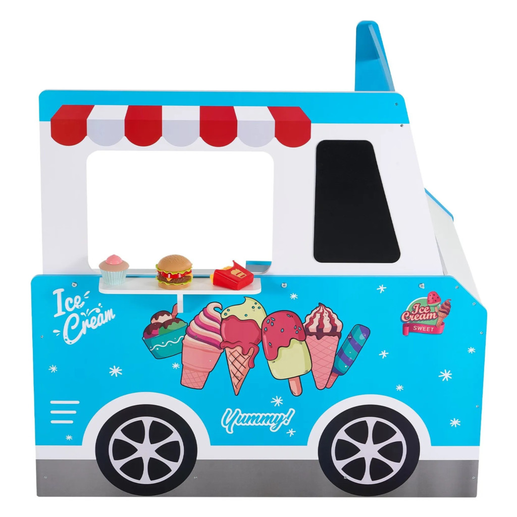 Ezzel a fa játék fagylaltos kocsi modellel gyermeke belekóstolhat a „vállalkozói” világba. Fagylaltot készíthet, hot dogot vagy akár hamburgert „szolgálhat fel”, miközben kommunikál és együtt játszik másokkal.