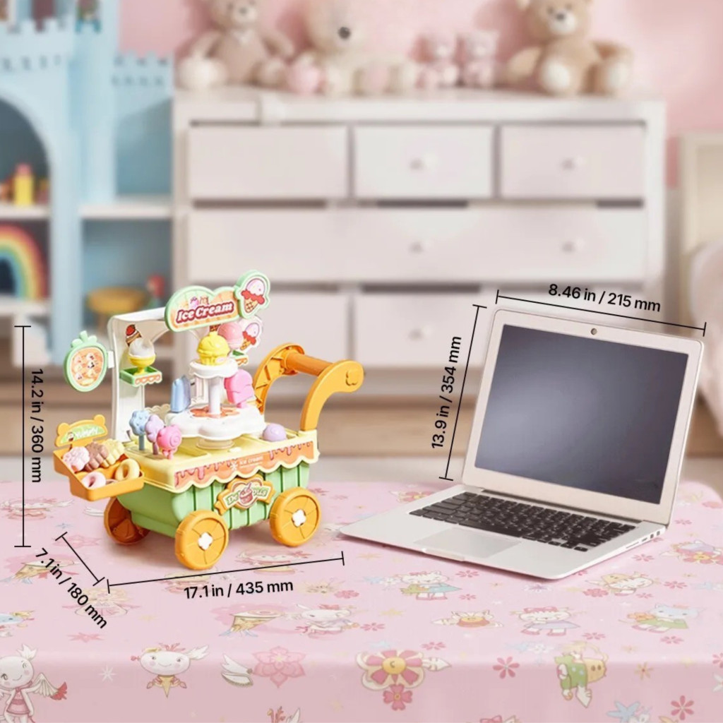 Ez a gyerek fagylaltos kocsi ideális ajándék születésnapra vagy ünnepekre. Egy játék, amely egyszerre nyújt élményt és fejlesztést.