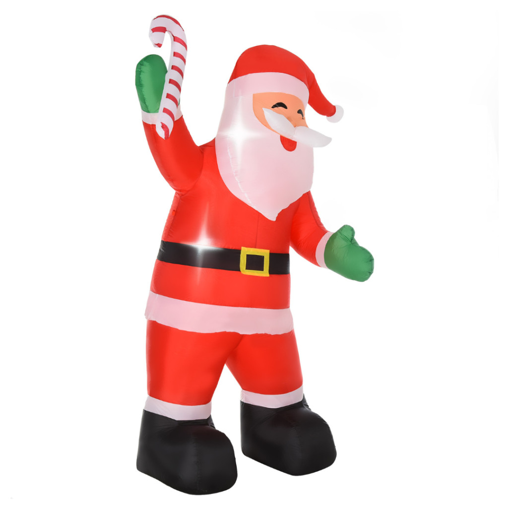 Felfújható karácsonyi dekoráció 240 cm világító Mikulás cukorpálcával, LED-fénnyel beltéri és kültéri használatra