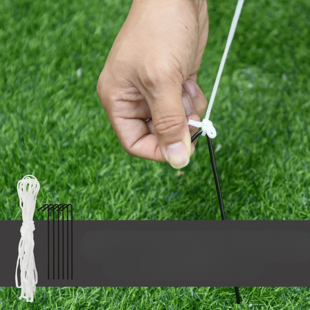 A csomag tartalmaz 6 rögzítő tüskét és 3 kötelet, amelyek megakadályozzák, hogy a dekoráció szeles időben elmozduljon.