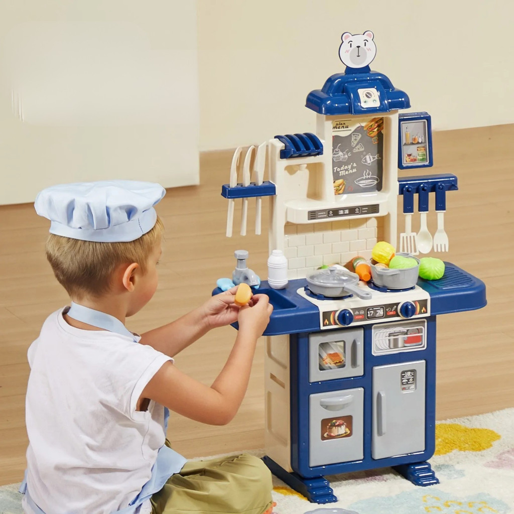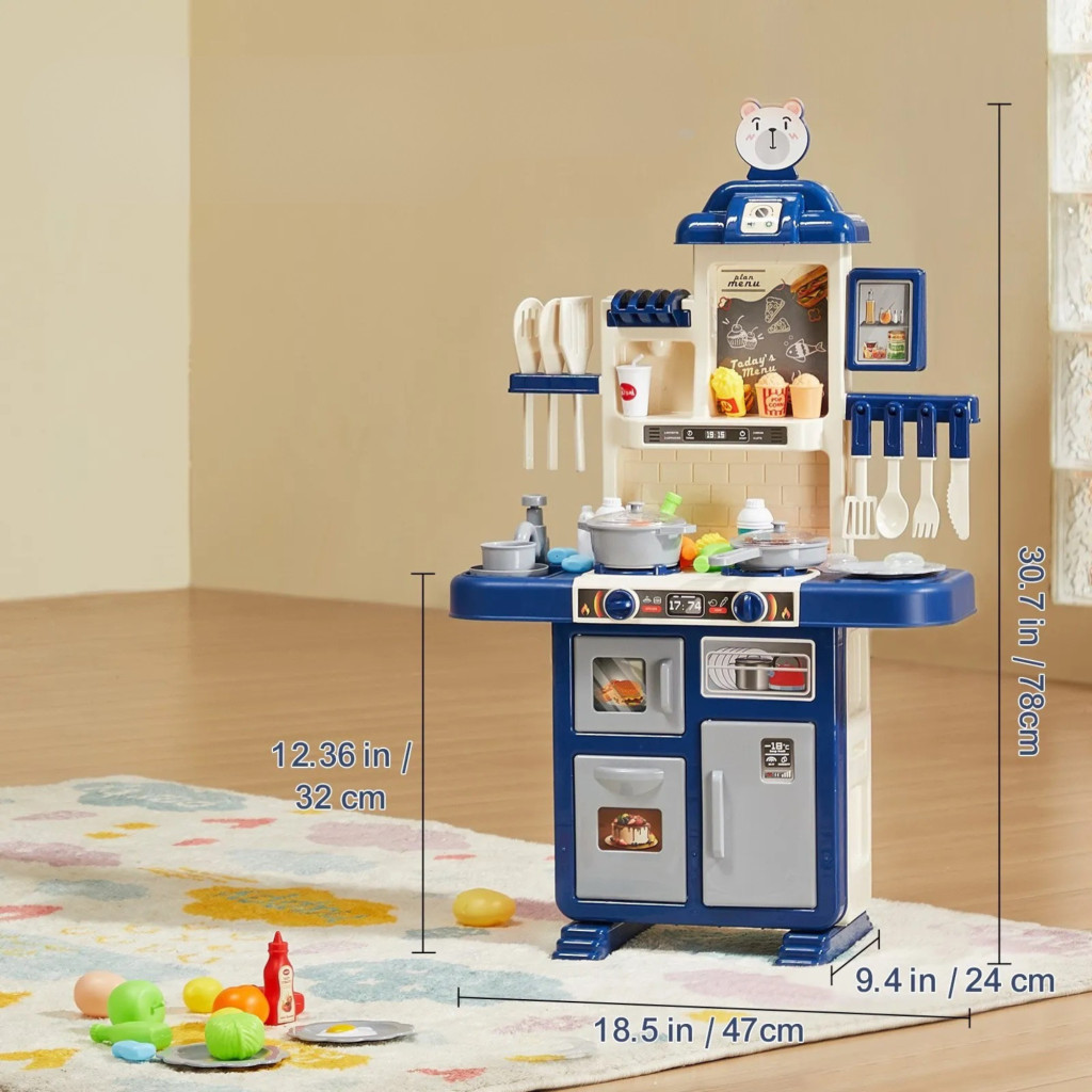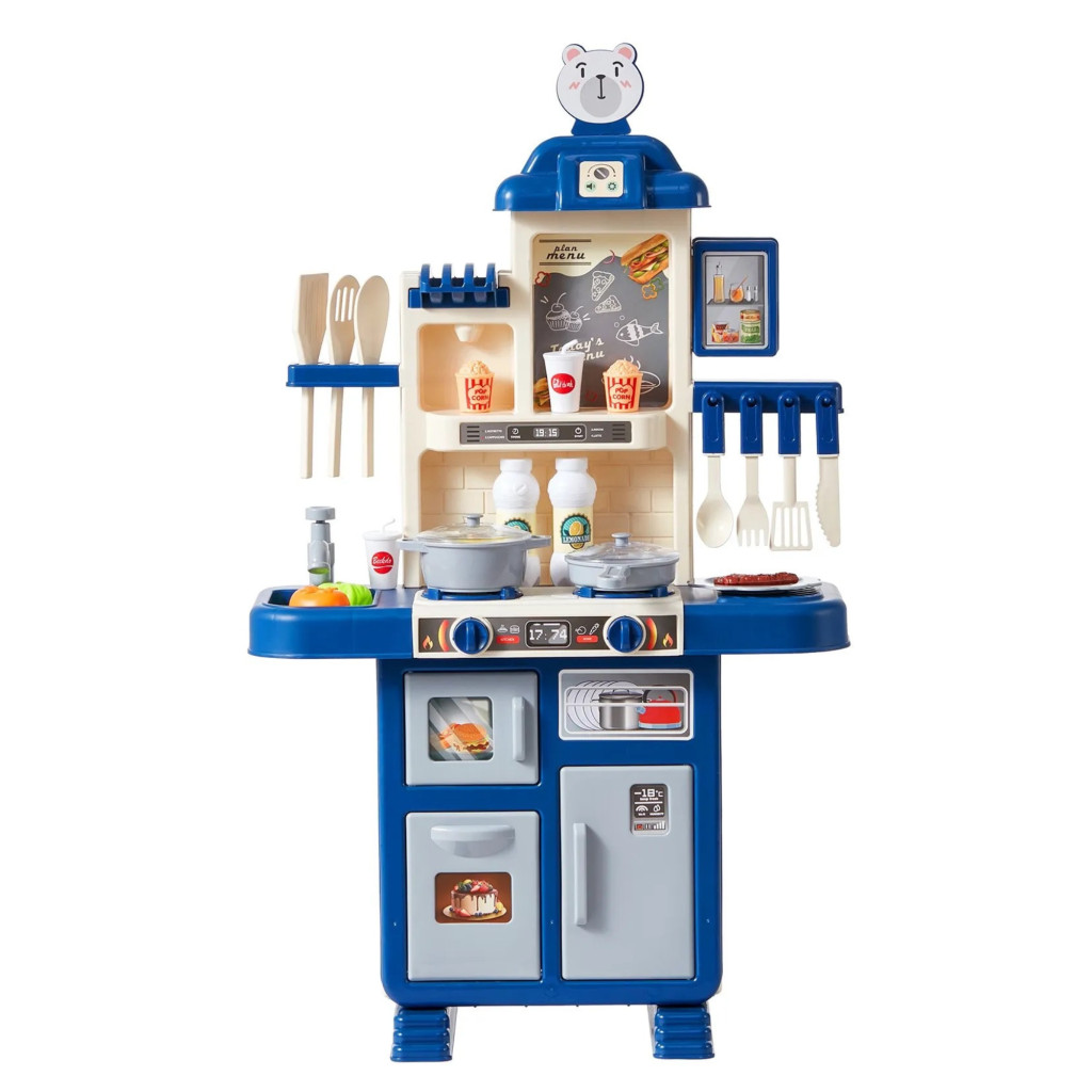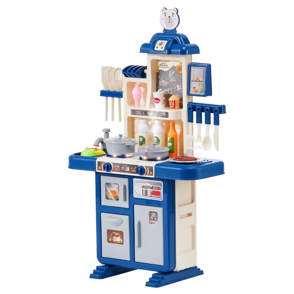 Gyerek játékkonyha kék konyha gőz funkcióval, fénnyel és hanggal, 48 kiegészítővel
