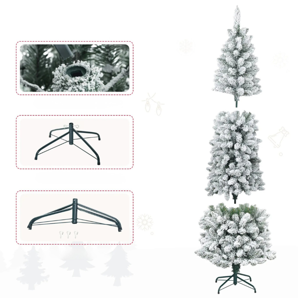 Műfenyő 75x210 cm keskeny kialakítású, havas hatású karácsonyfa háromrészes, stabil fém talppal