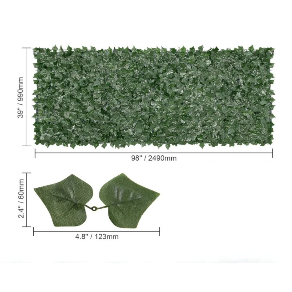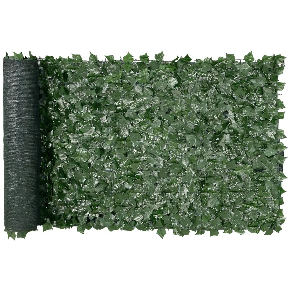 Műsövény belátásgátló kerítés 99x249 cm műzöld falvédő borostyánkerítés hálós hátlappal