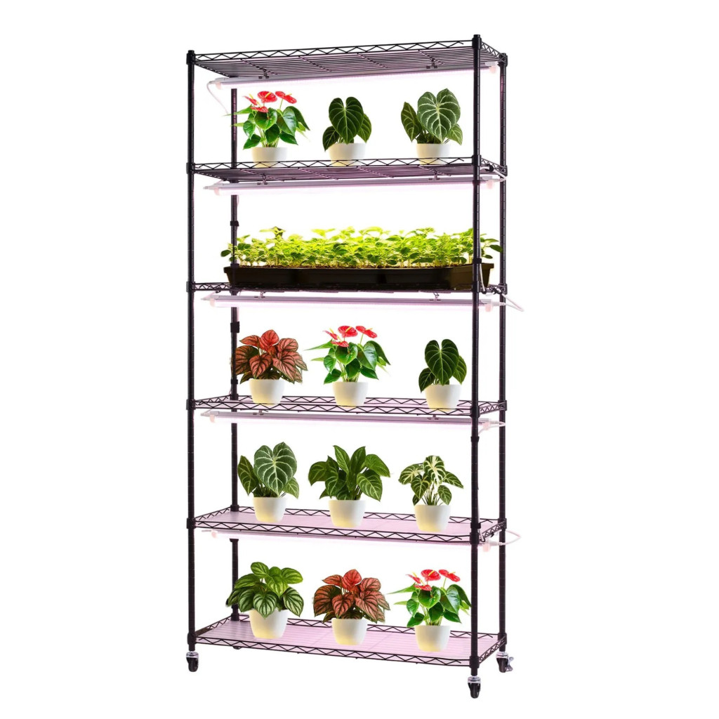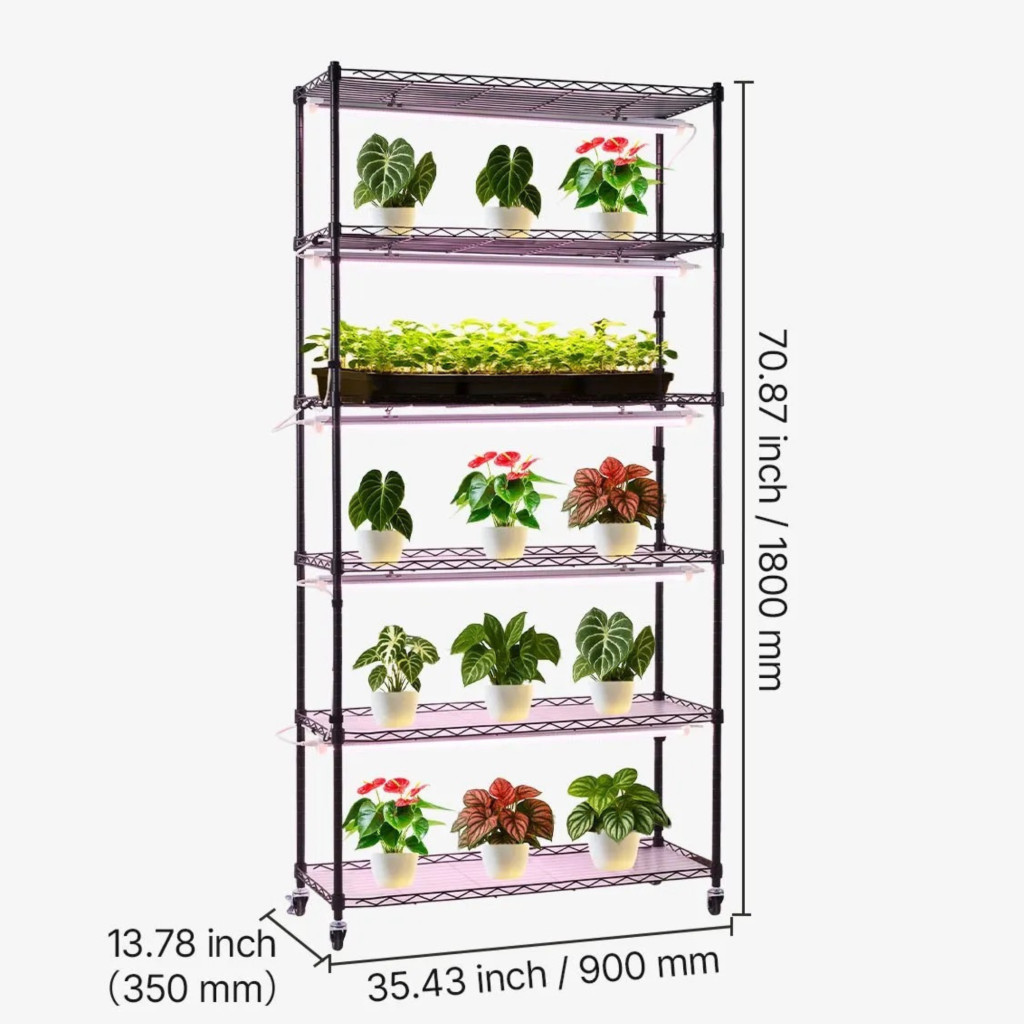 A 180 cm magas növényállvány hat tágas polccal rendelkezik, amelyek elegendő helyet biztosítanak különböző növények számára. Ideális választás: