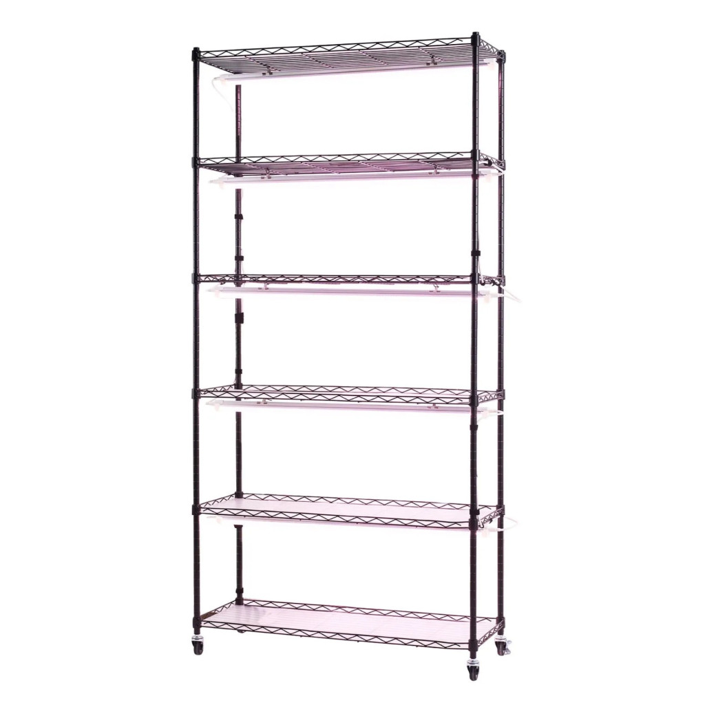 Növényállvány LED növénylámpával 90x35x180 cm 6 szintes gurulós növénynevelő állvány időzítővel