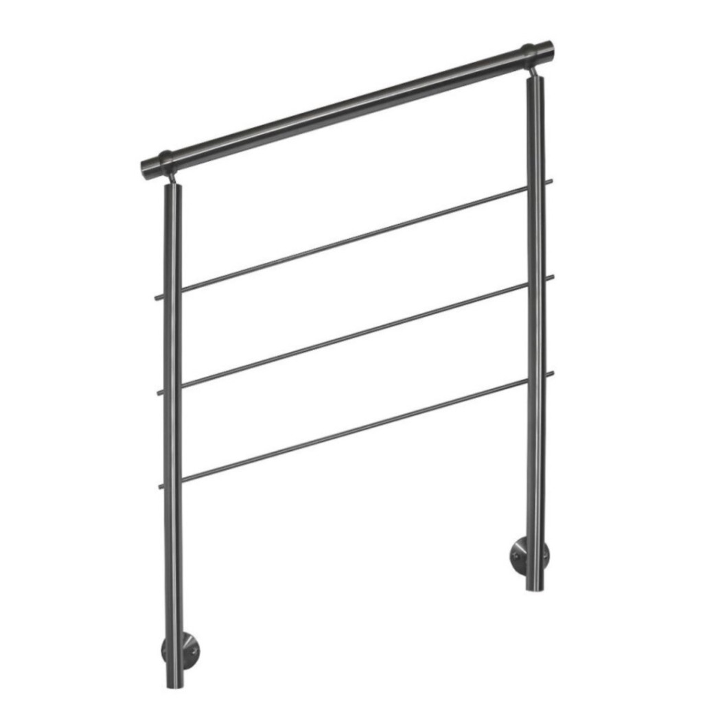 Rozsdamentes lépcsőkorlát 120 cm állítható erkélykorlát oldalsó rögzítéssel 2 oszloppal 3 db keresztrúddal 10 mm távtartó