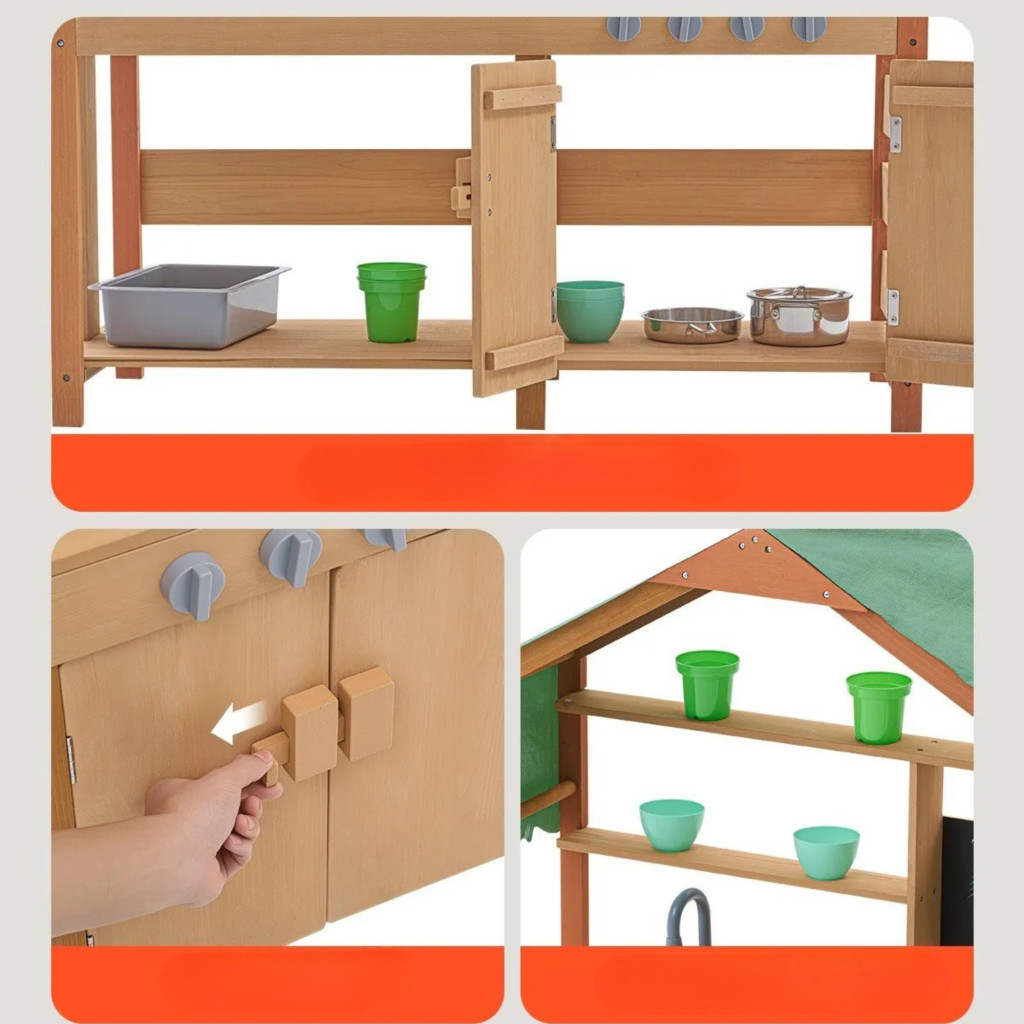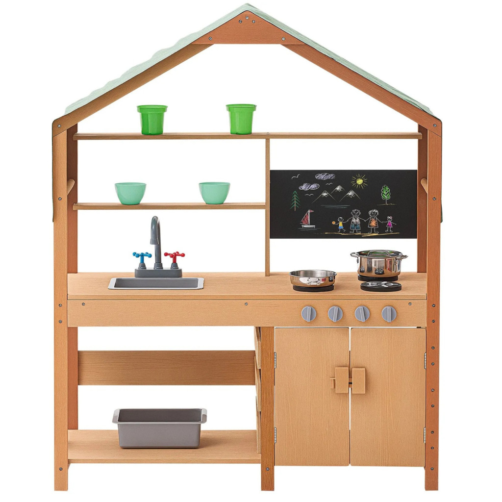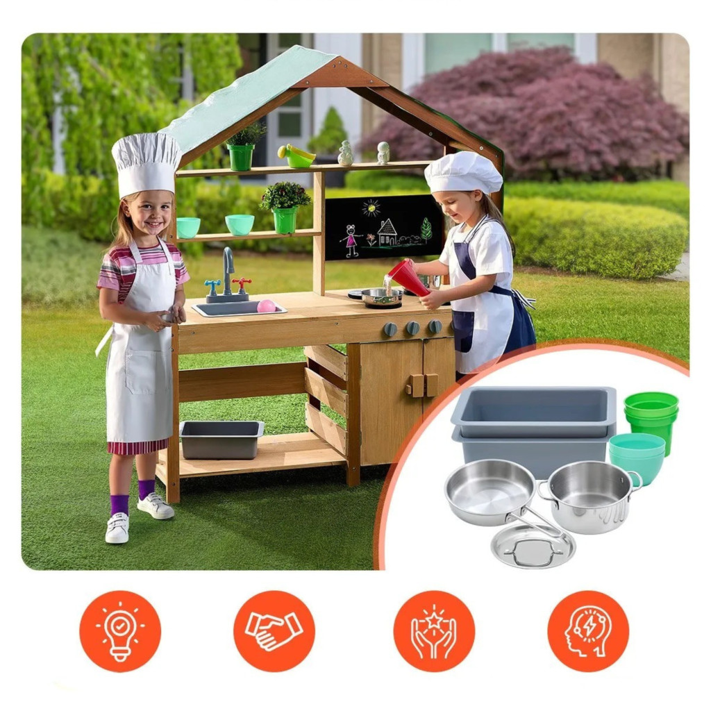 Ez a gyerek sárkonyha tetővel egy prémium, időjárásálló és látványos játék, amely a szabadban biztosít kreatív és fejlesztő szórakozást.