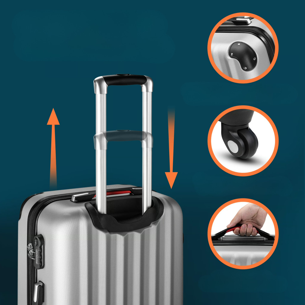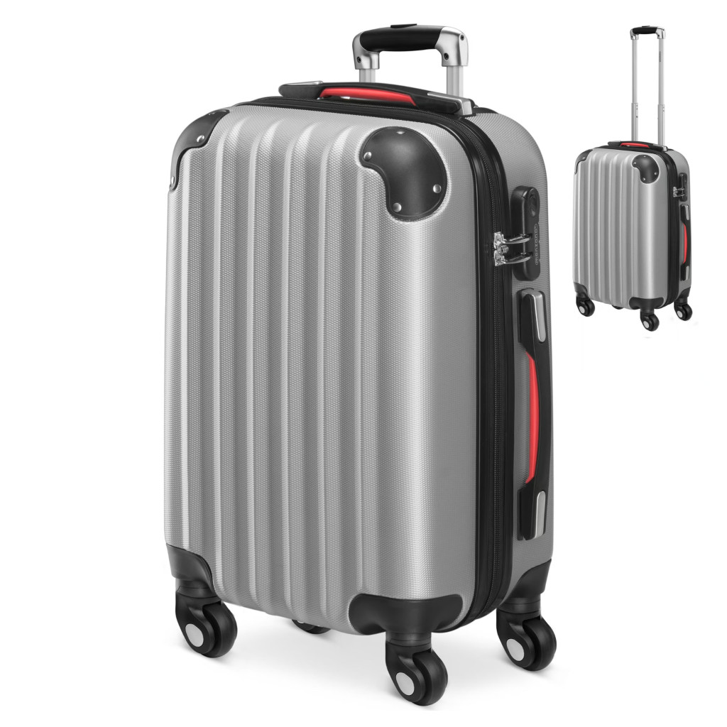 ABS keményfalú kézipoggyász bőrönd 360°-os kerekekkel, ezüst színben