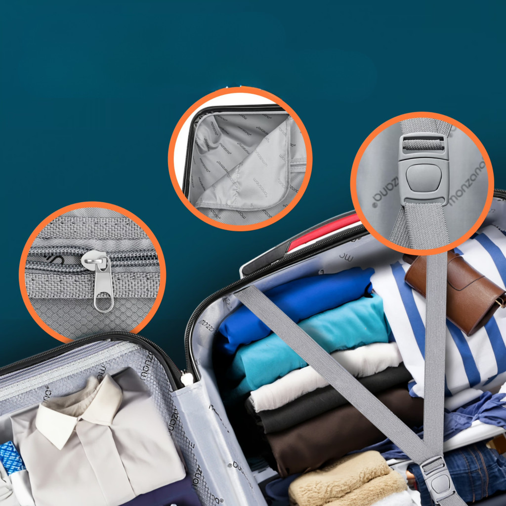 A rögzítő pántok és a hálós belső zseb gondoskodnak arról, hogy ruhái és személyes tárgyai biztonságosan, elmozdulás nélkül maradjanak a helyükön.