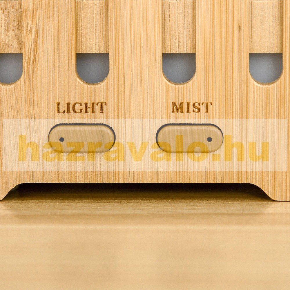 Aroma diffúzor bambusz házzal 10x10x13 cm 7 LED világítással