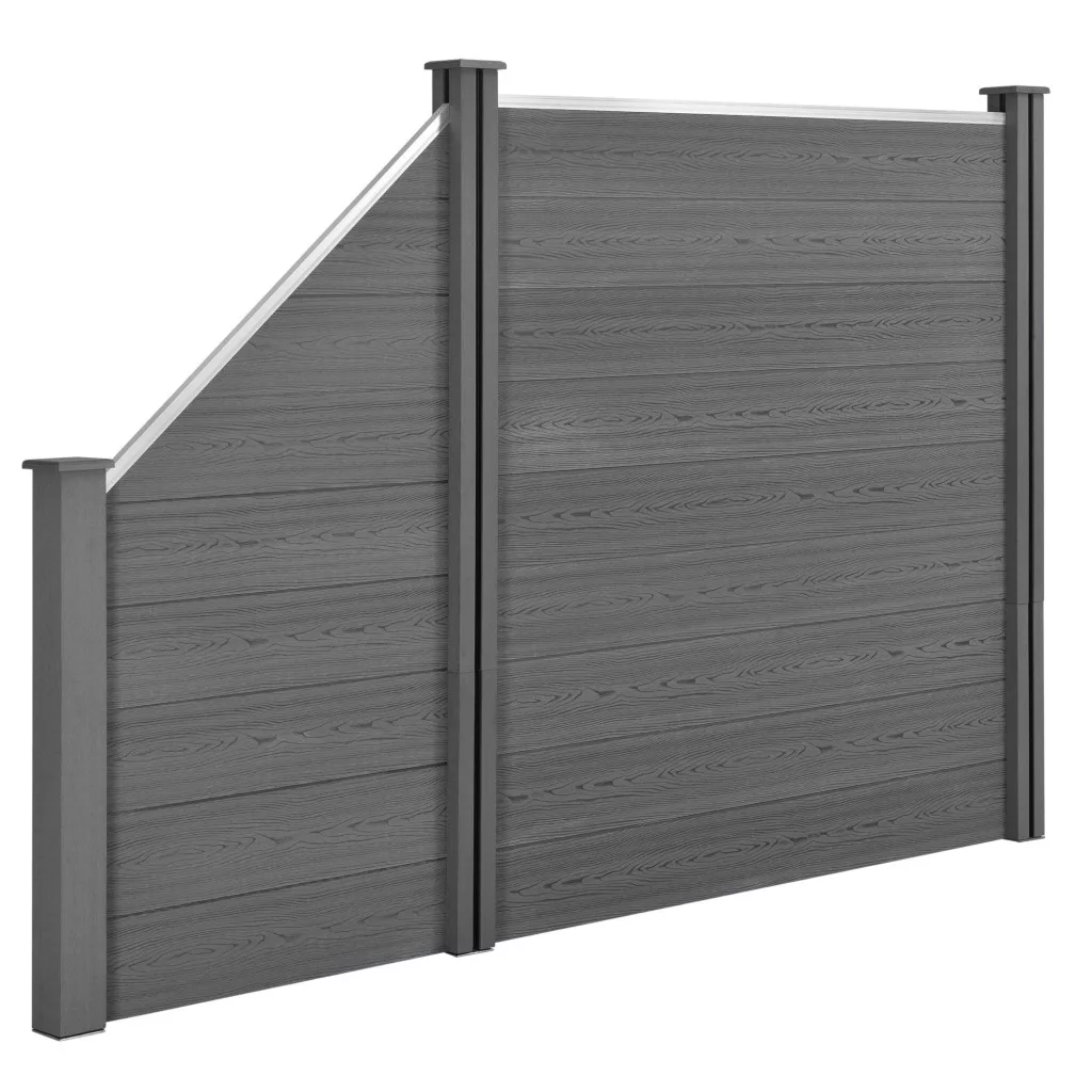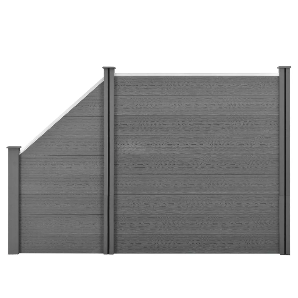WPC kerítéspanel ferde elemmel 183x277 cm szürke WPC kerítés négyszögletes és ferde elemmel
