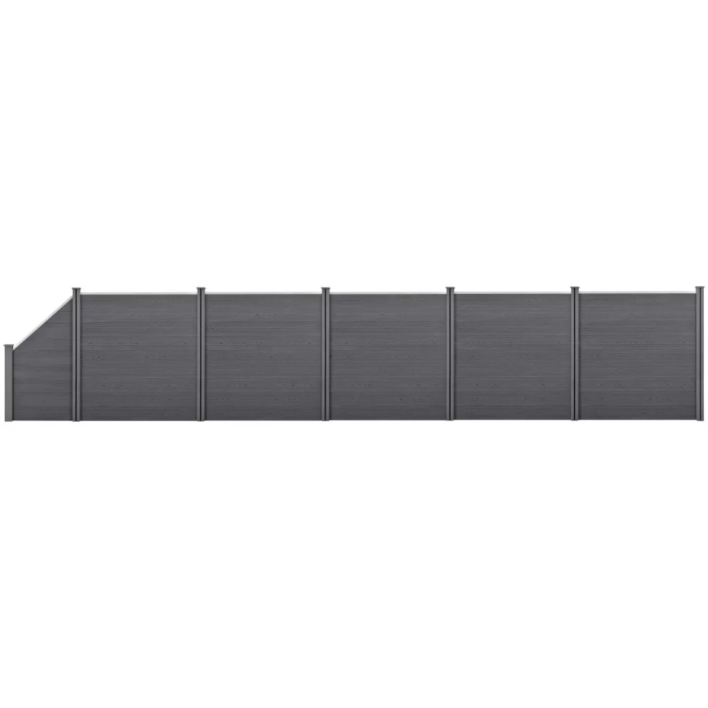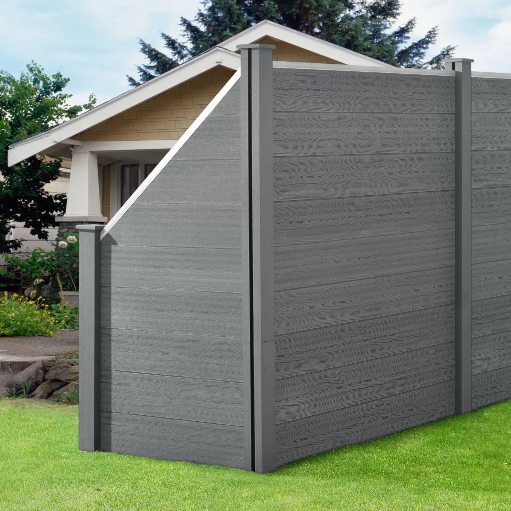 WPC kerítéspanel ferde elemmel 183×973 cm szürke időtálló WPC kerítés extra széles szakaszhoz