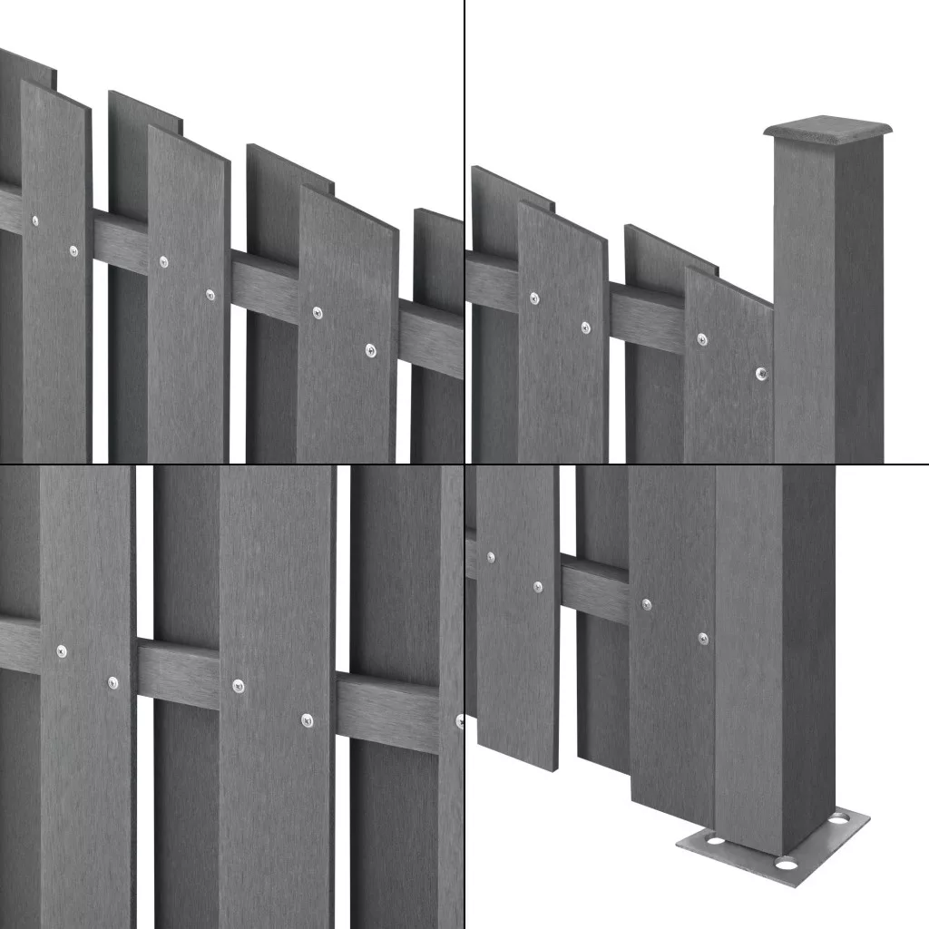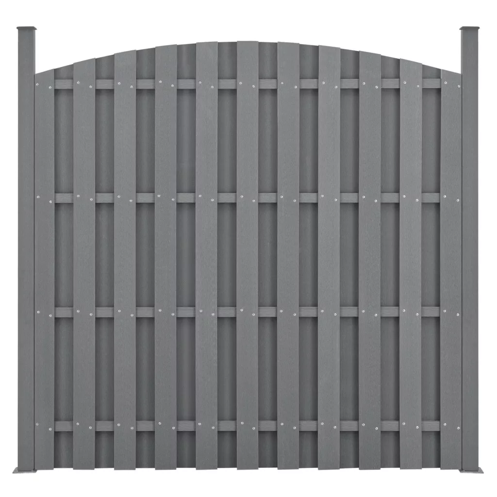 WPC félköríves kerítéspanel (165–185)×376 cm szürke időjárásálló WPC kerítés 2 elemből