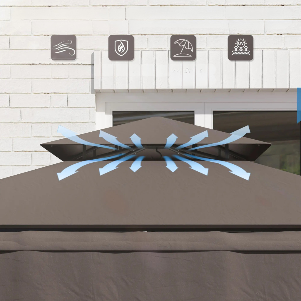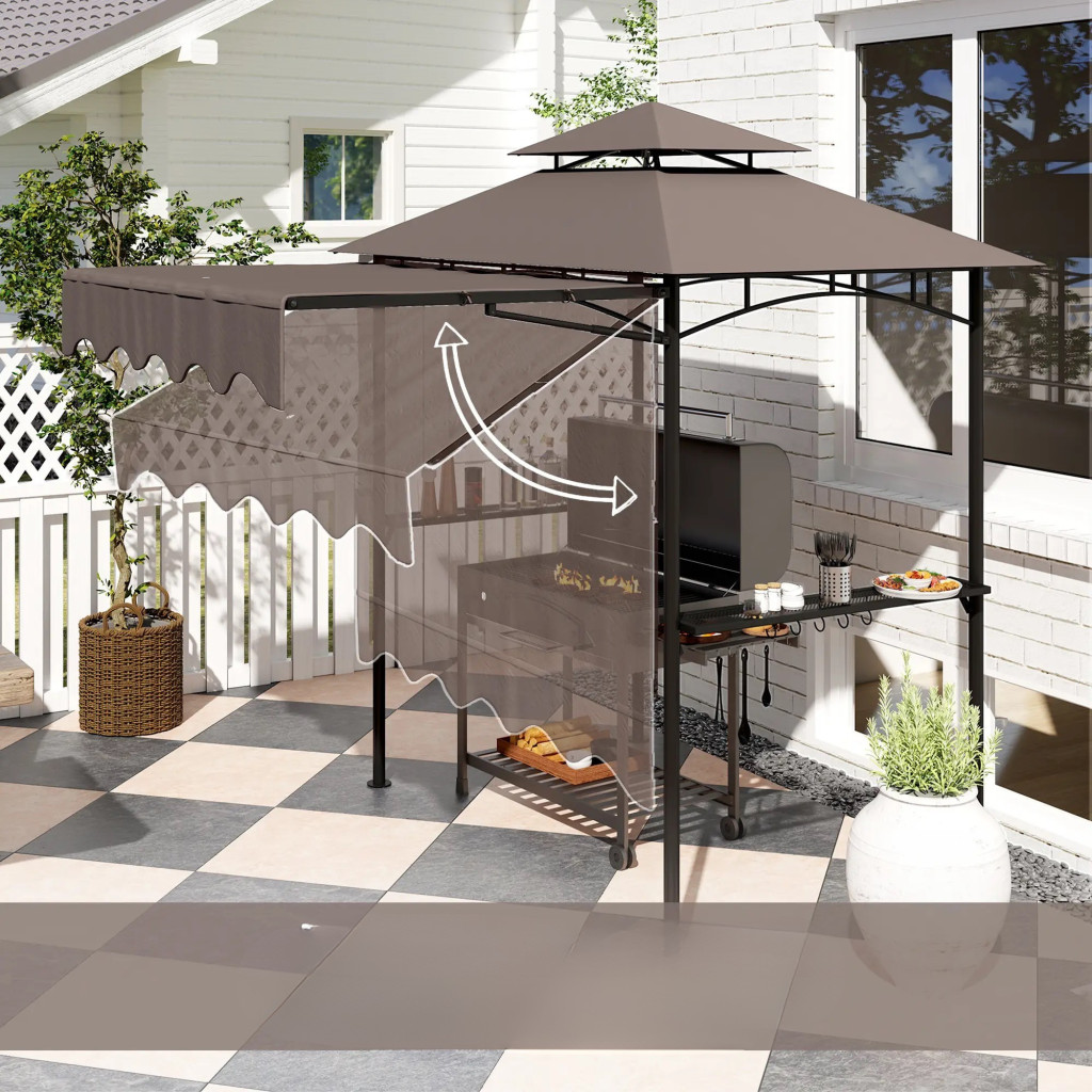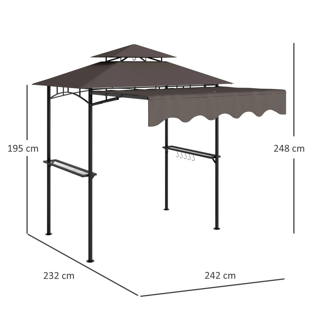 Grillpavilon állítható napellenzővel 242x149x248 cm dupla tetős BBQ pavilon grillsátor