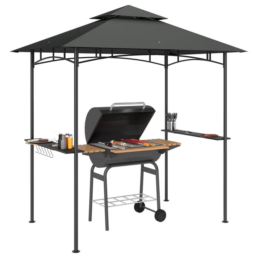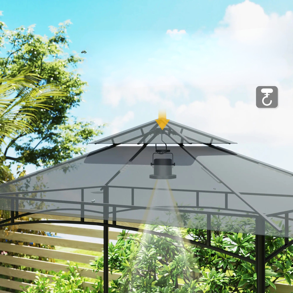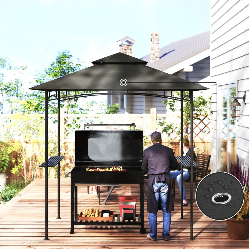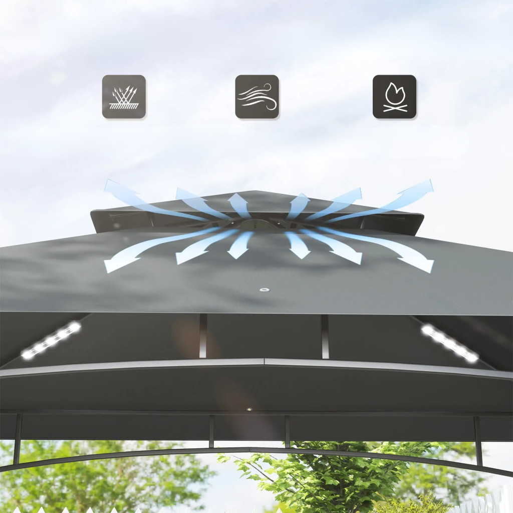 Kerti grillpavilon LED világítással 240x150x258 cm kerti grillsátor dupla rétegű tetővel