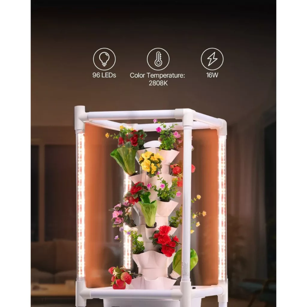 A rendszerhez tartozó LED növénytermesztő lámpa (16 W, 96 LED, természetes 2808 K színhőmérséklet) biztosítja, hogy növényei gyenge fényviszonyok között vagy téli időszakban is megfelelő megvilágítást kapjanak. Az intelligens vezérlés lehetővé teszi a világítás időtartamának könnyű beállítását a különféle növények igényeihez.