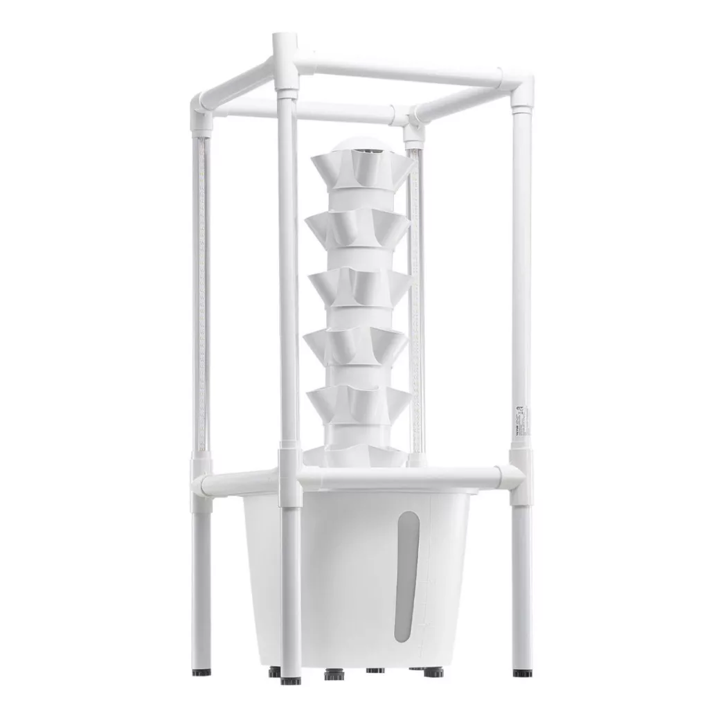 Hidrokultúrás növénytermesztő torony termesztőlámpával – 30 ültetőhellyel, 6 szintes kialakítással, vízszivattyúval és időzítővel