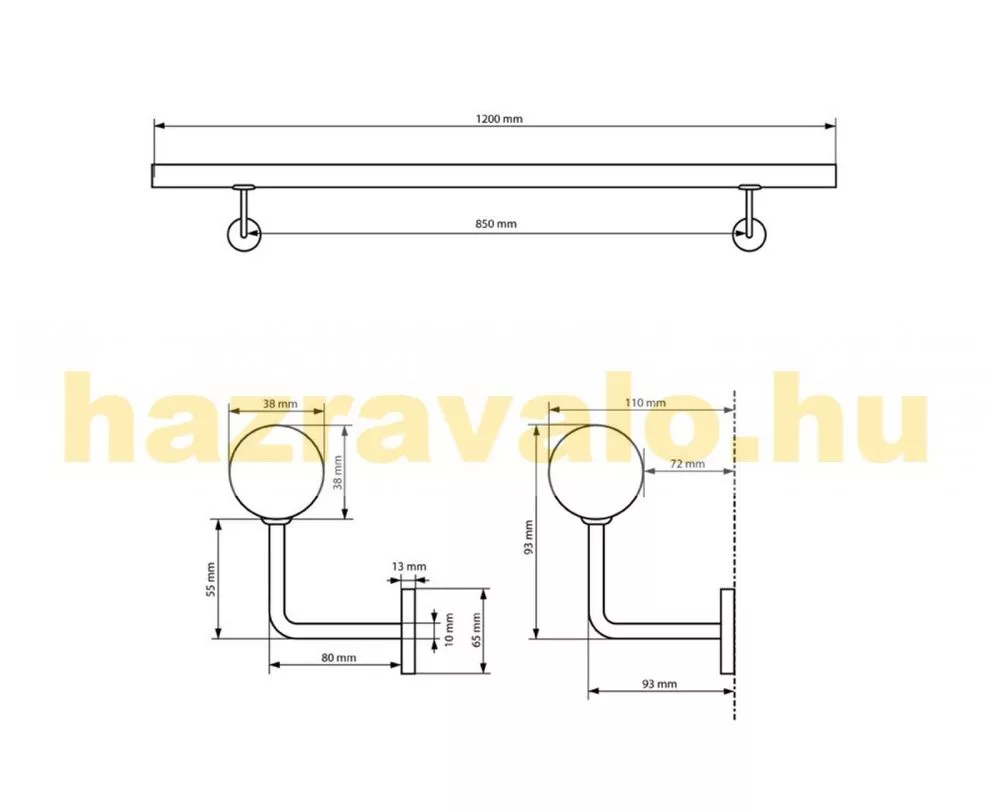Fali tartóval, dűbellel szállítjuk.