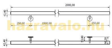 Korlát rozsdamentes kapaszkodó 200 cm hosszú 42 mm átmérővel saválló inox anyagból