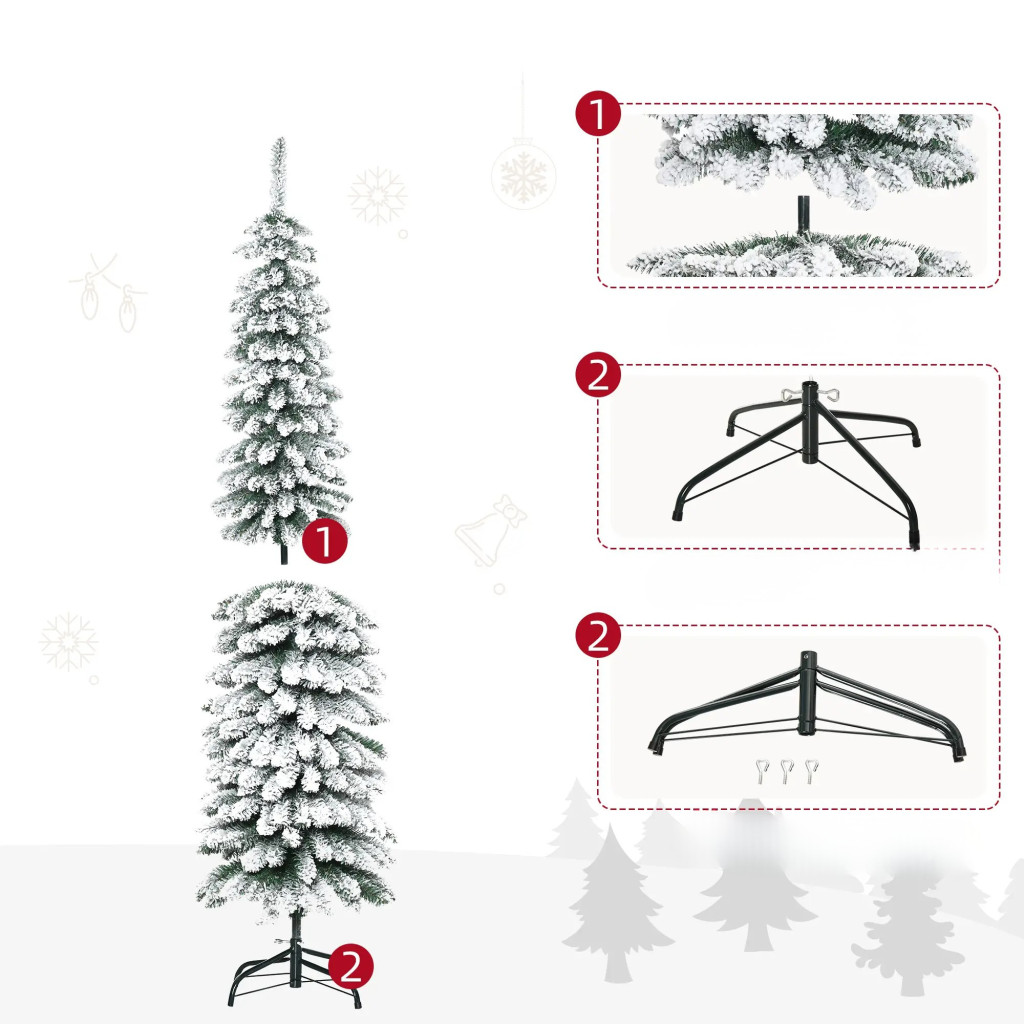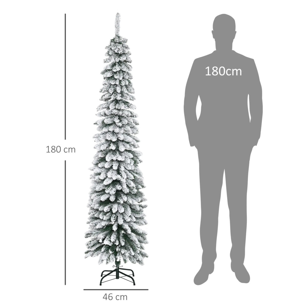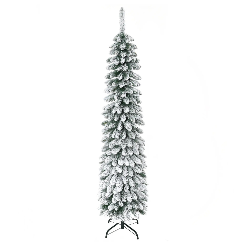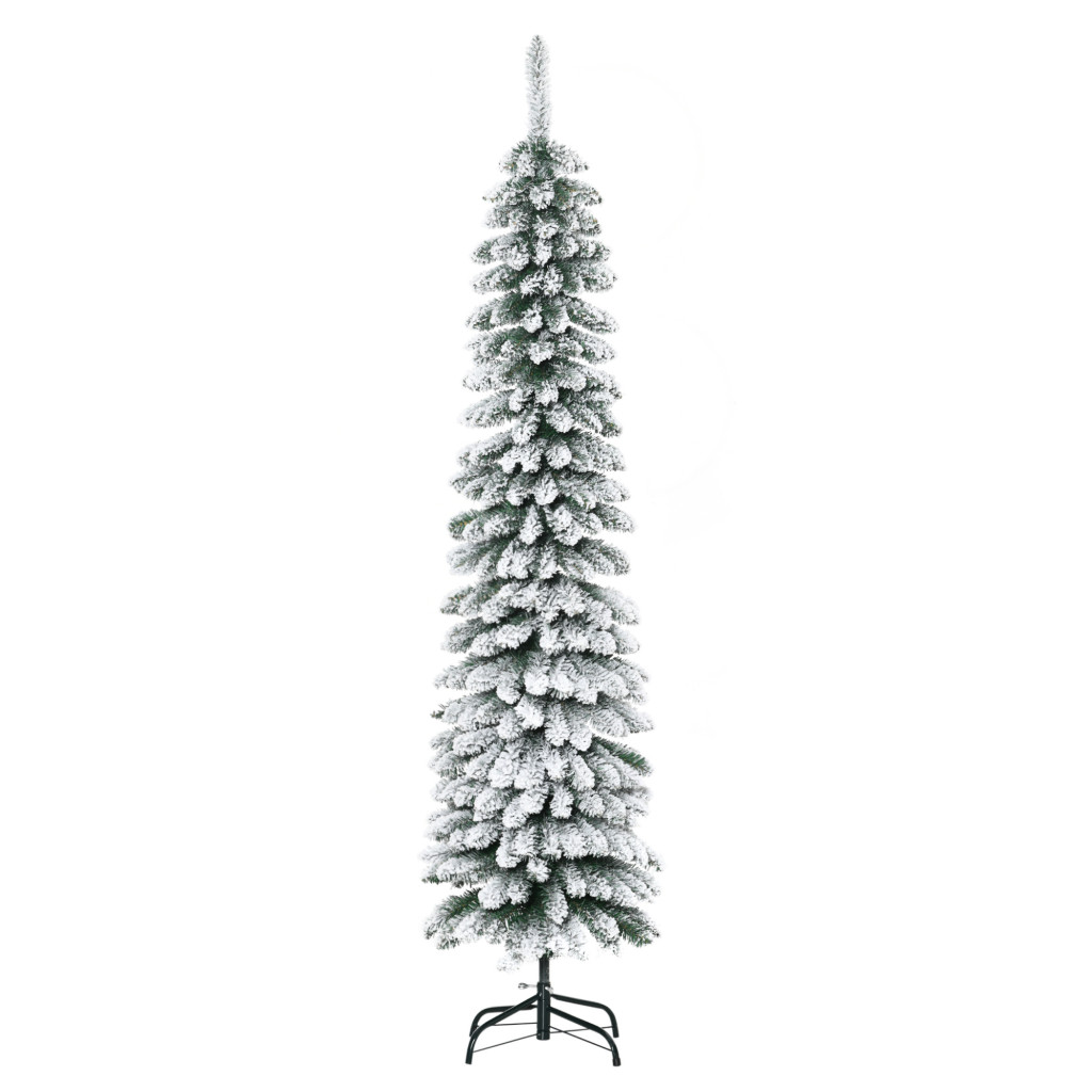 Műfenyő 180 cm havas hatású keskeny kialakítású karácsonyfa, zöld/fehér