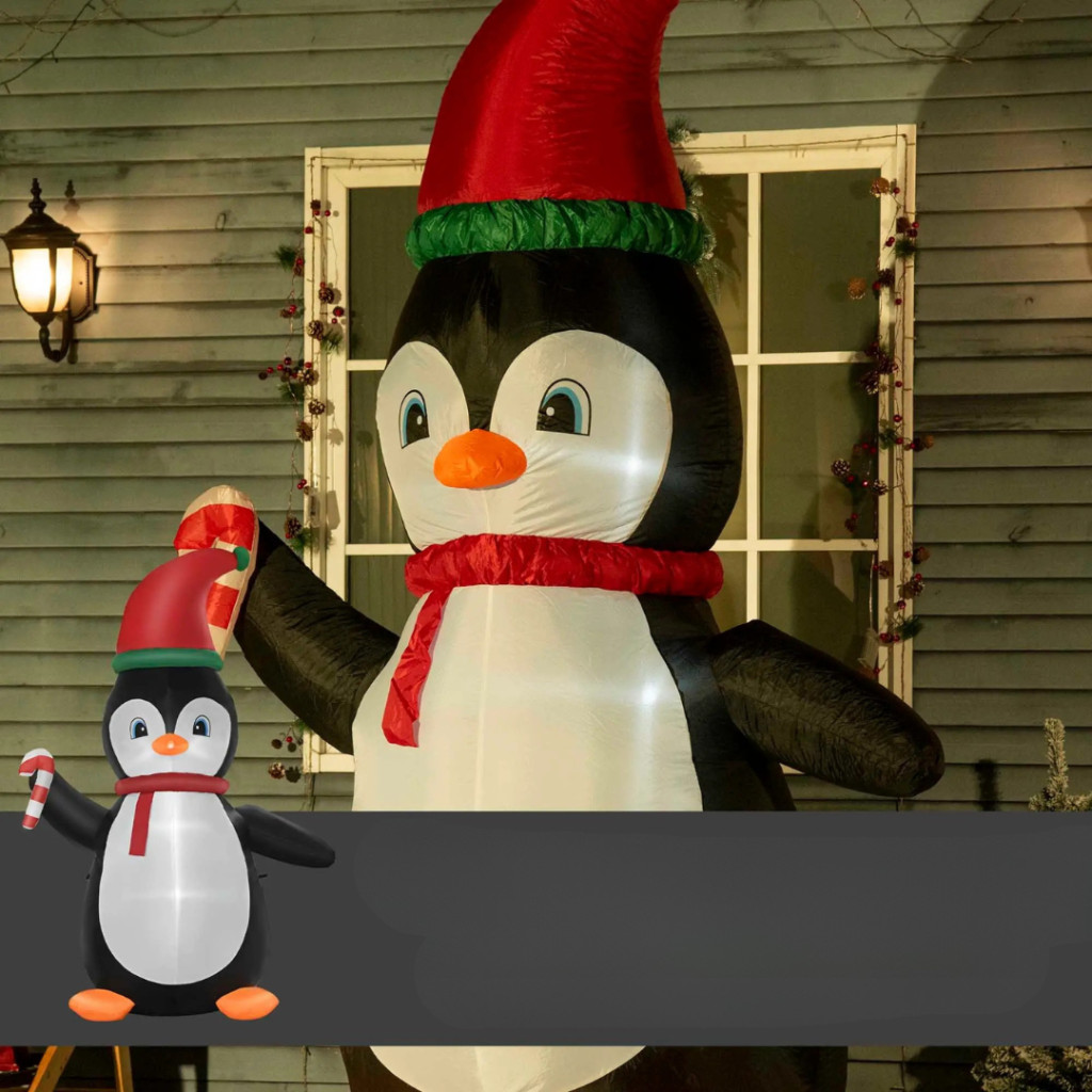 A 250 cm magas, több színben pompázó felfújható karácsonyi dísz azonnal az ünnepi szezon középpontjává válik. A kedves pingvinfigurát piros, fehér és fekete színei teszik igazán vidámmá és figyelemfelkeltővé – tökéletes választás, ha szeretné, hogy otthona vagy kertje különleges karácsonyi hangulatot árasszon.