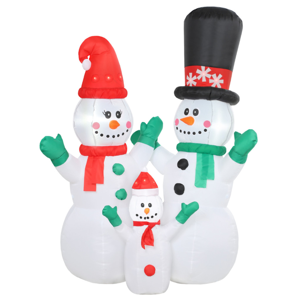 Világító felfújható hóember család