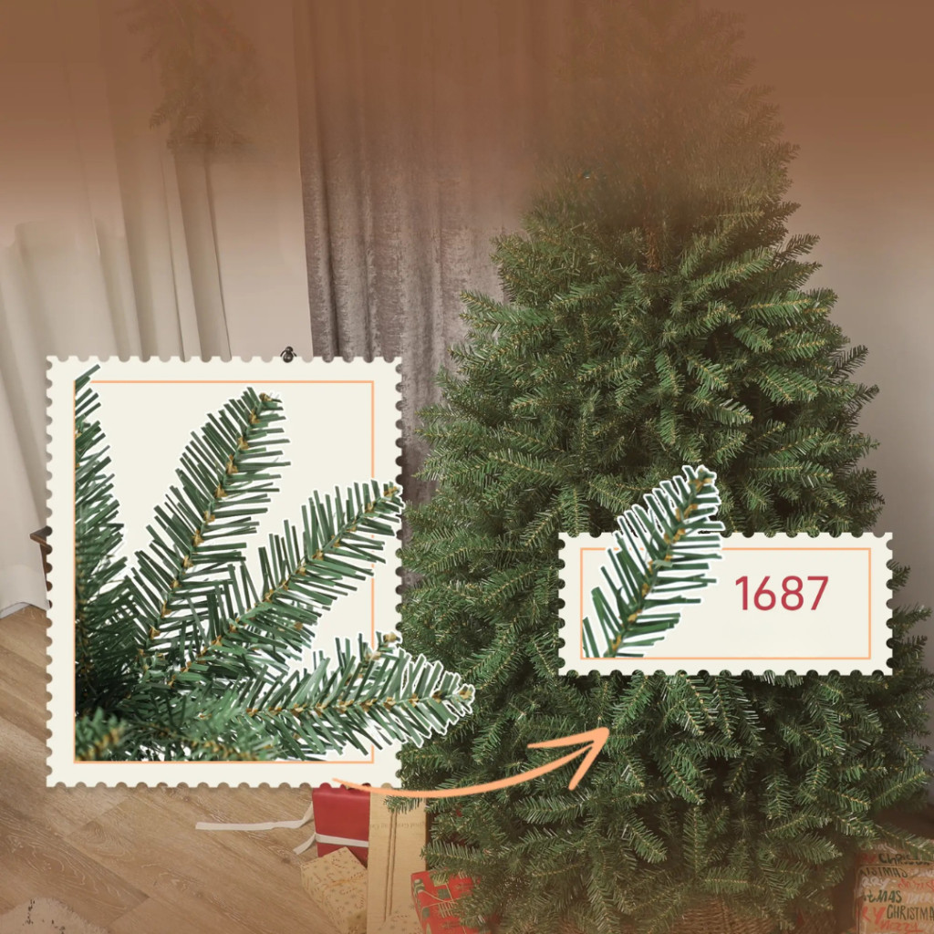 A műfenyő 1687 sűrűn elhelyezett ága természetes karácsonyfa megjelenést biztosít, amely élethű, telt és harmonikus formát kölcsönöz a fának. Ideális választás, ha klasszikus karácsonyi atmoszférát szeretne teremteni, amely minden díszt és fényfüzért gyönyörűen kiemel.