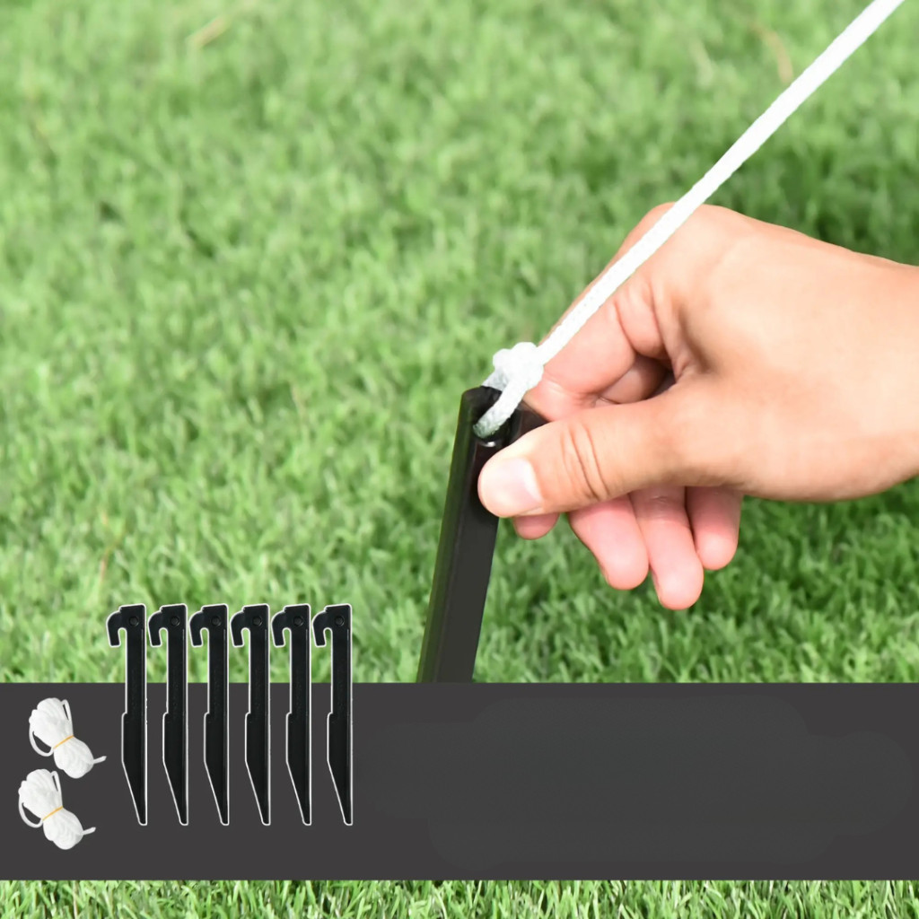 Tartozékok: 6 db földhorgony tüske, 2 db rögzítőkötél, 1 db homokzsák