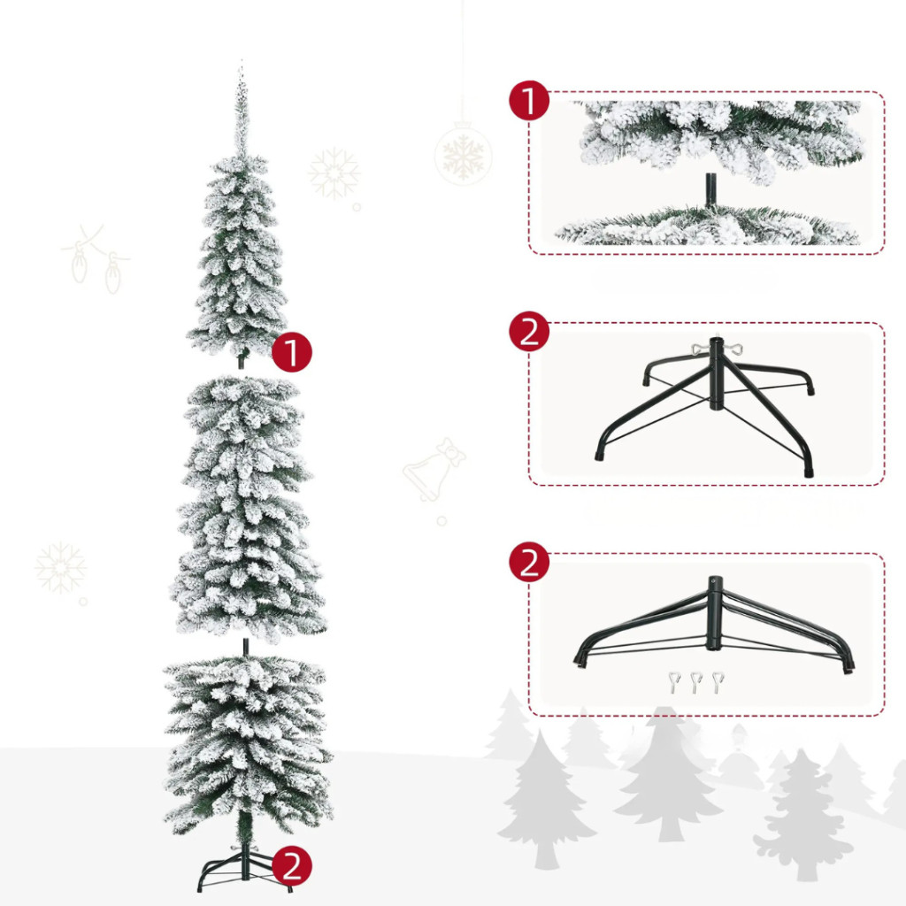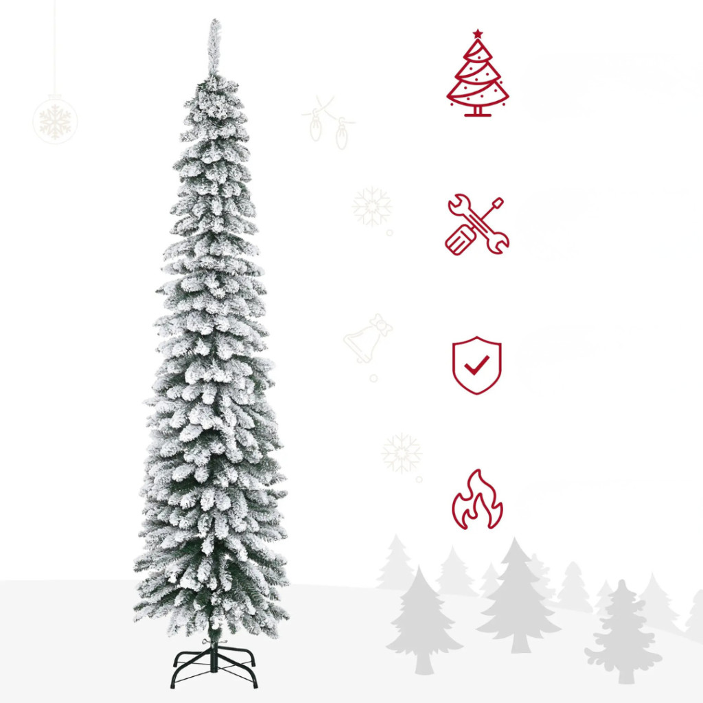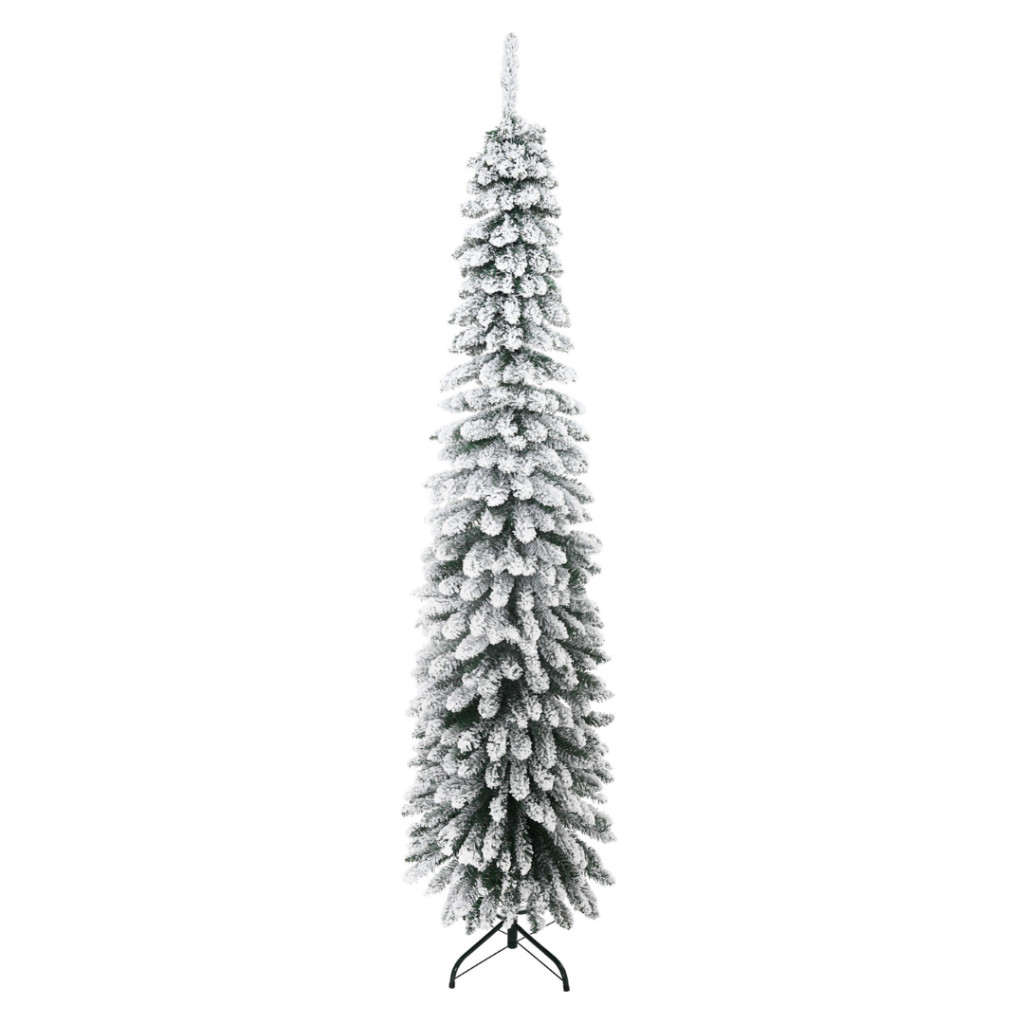 Műfenyő 210 cm havas hatású karácsonyfa keskeny kialakítású műfenyő zöld/fehér