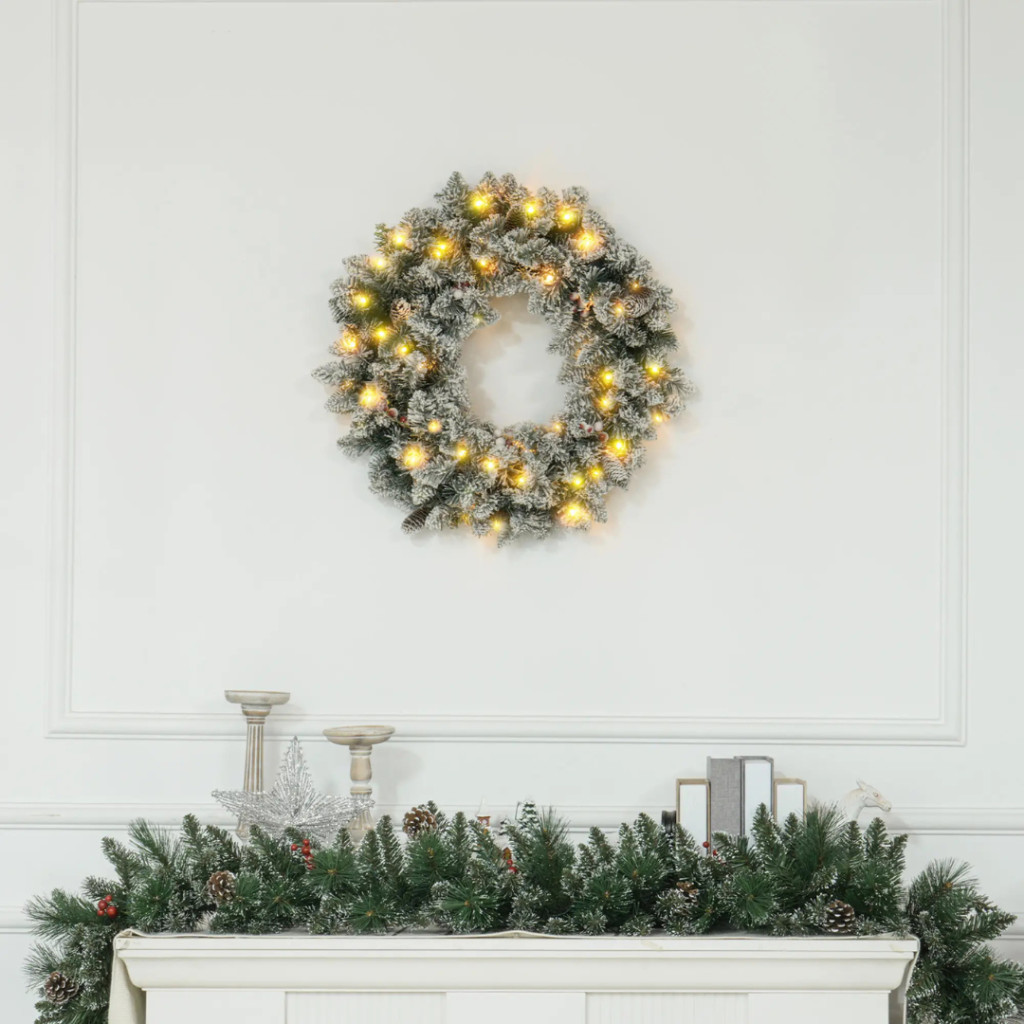 A koszorú 3 darab AA elemmel működik (nem tartozék), így nincs szükség konnektorra vagy kábelekre. Szabadon elhelyezheti ajtón, falon, ablakon, kandallópárkányon vagy verandán – bárhol, ahol egy kis karácsonyi ragyogást szeretne.