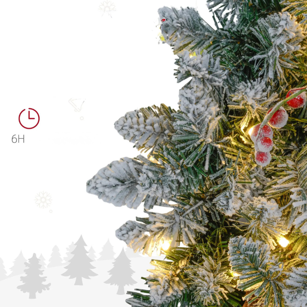 A koszorút 210 valósághű ág alkotja, köztük 20 fenyőtűs ágrész, amelyek élethű, dús megjelenést biztosítanak. A piros bogyók és tobozok kontrasztos színei feldobják a zöld tűleveleket, így a dekoráció meleg, meghitt és elegáns hatást kelt.