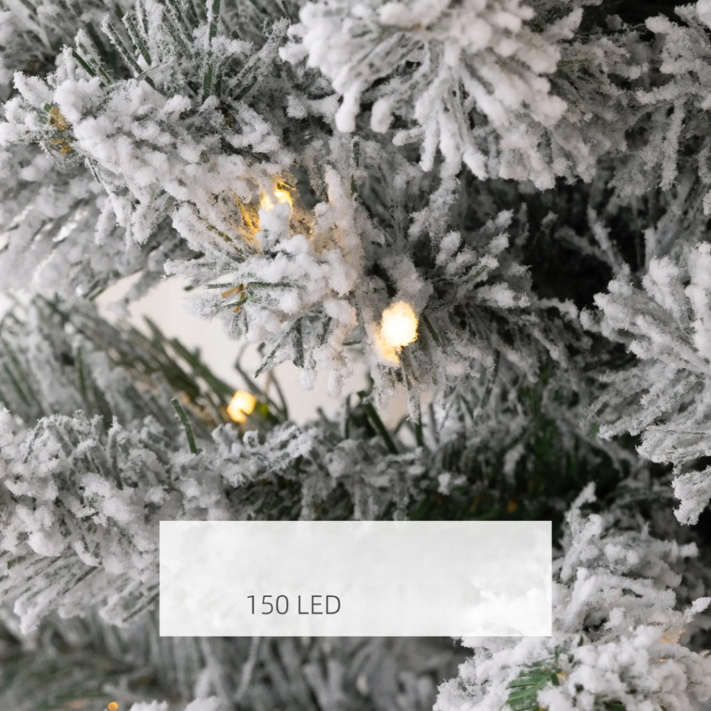 A karácsonyfa 150 melegfehér LED-izzóval van felszerelve, amelyek egyenletesen elosztva világítják meg az ágakat. A fények meghitt, hangulatos ragyogást biztosítanak, miközben energiatakarékosak és hosszú élettartamúak.