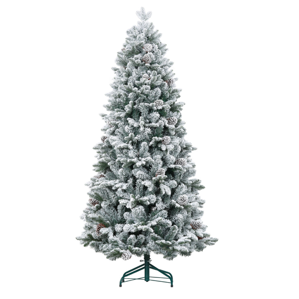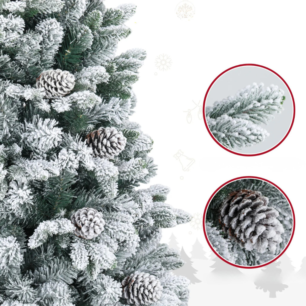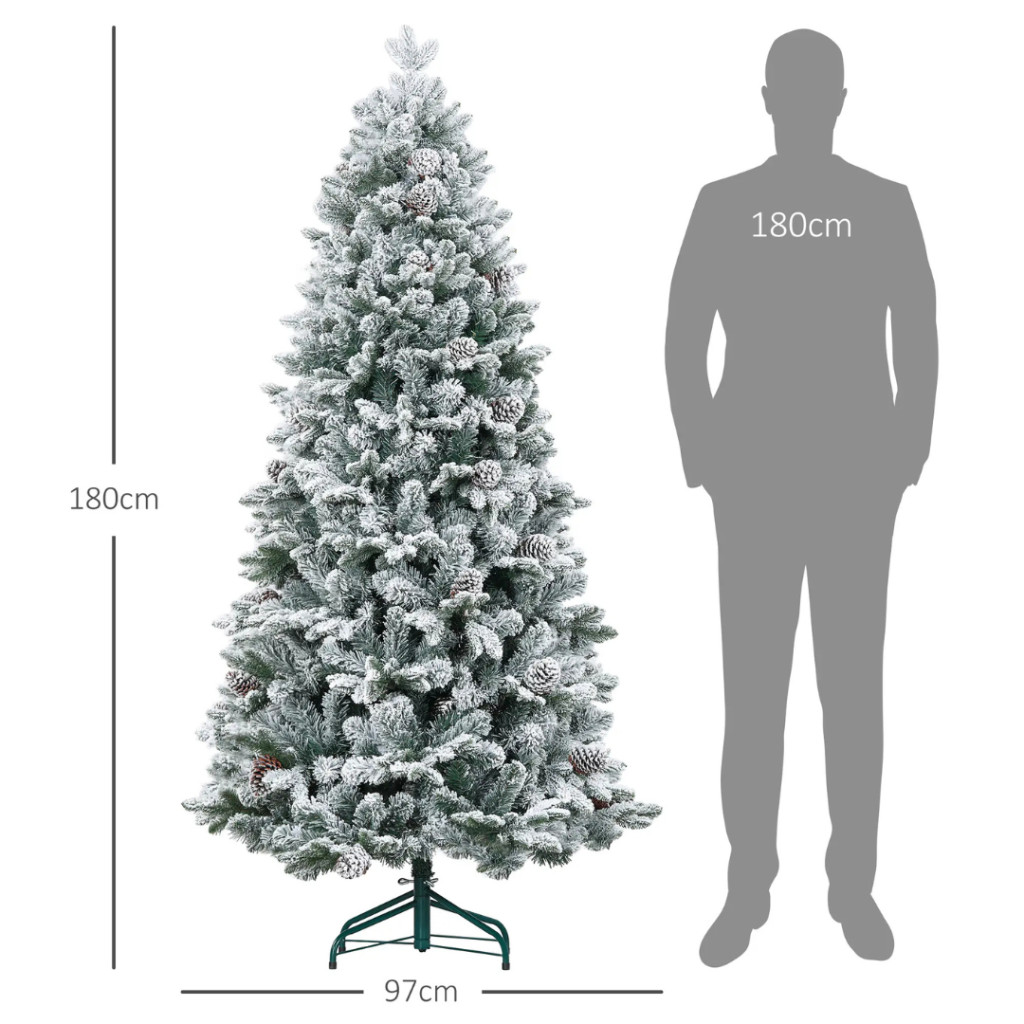 Műfenyő 183 cm havas hatású, tobozos karácsonyfa élethű fém talppal