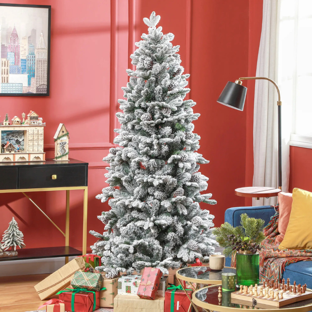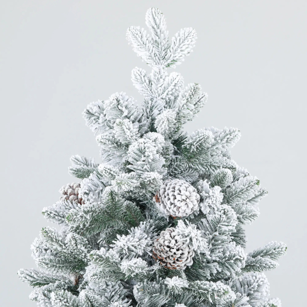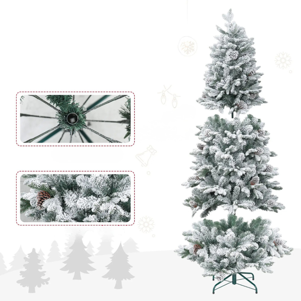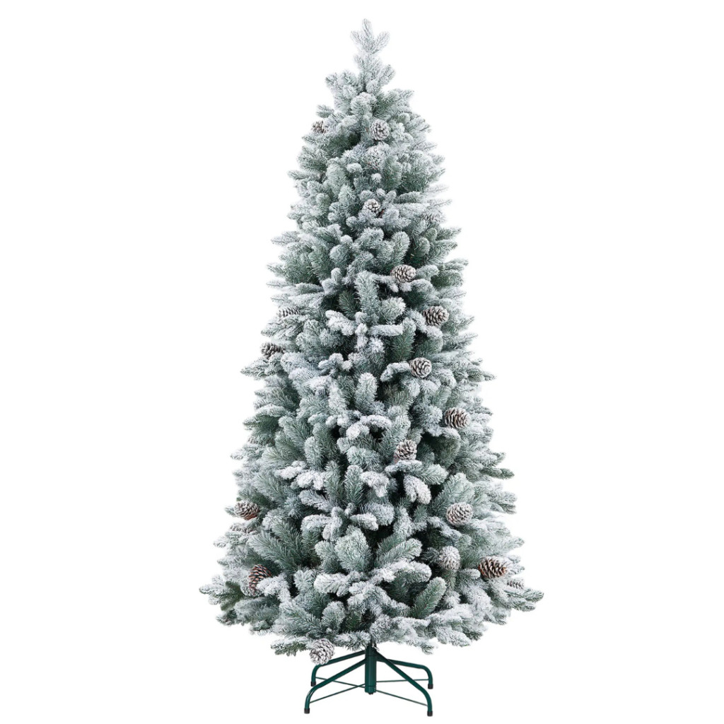 Műfenyő 183 cm havas hatású, tobozos karácsonyfa élethű fém talppal