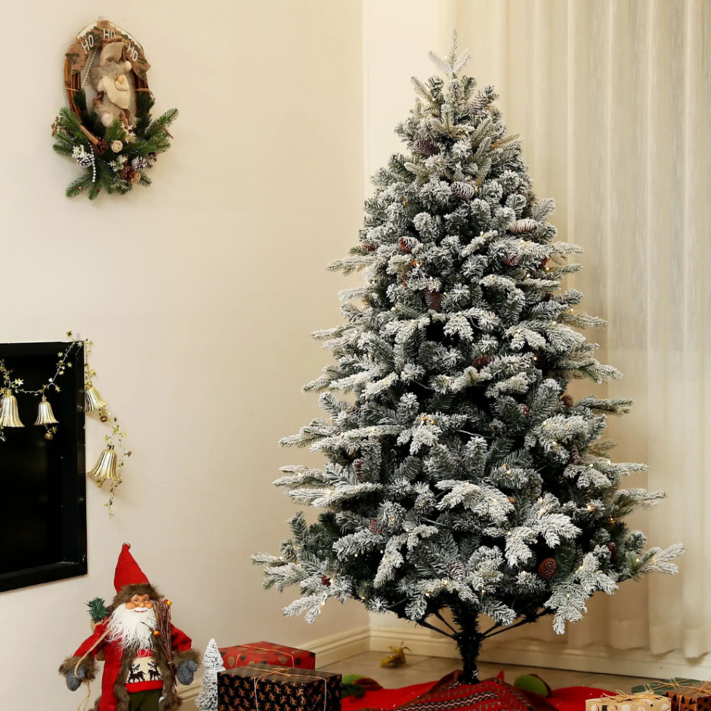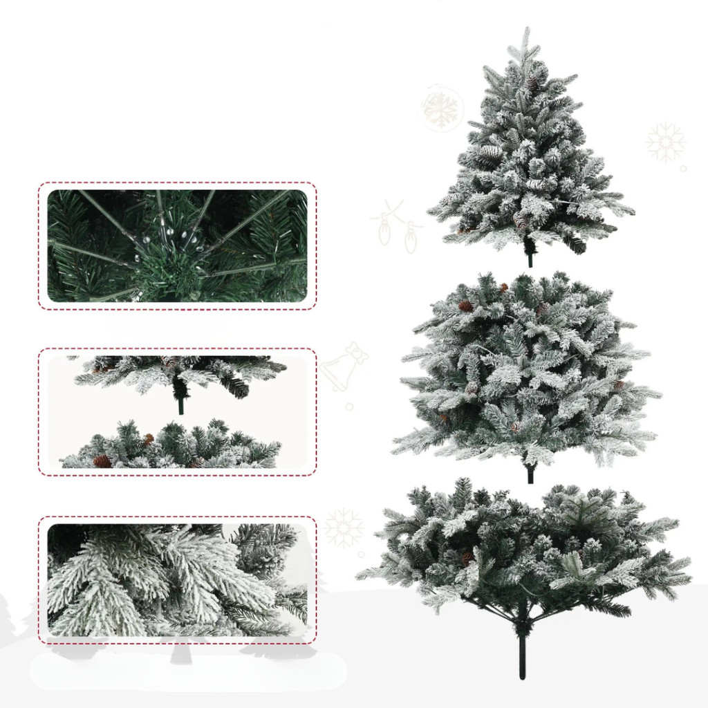 LED-es műfenyő 180 cm havas ágakkal, melegfehér fényekkel, fém talppal