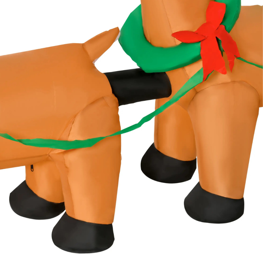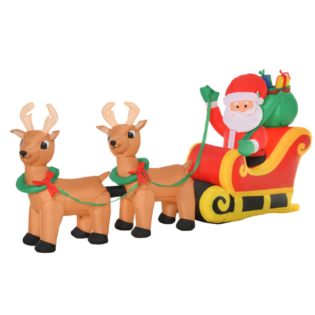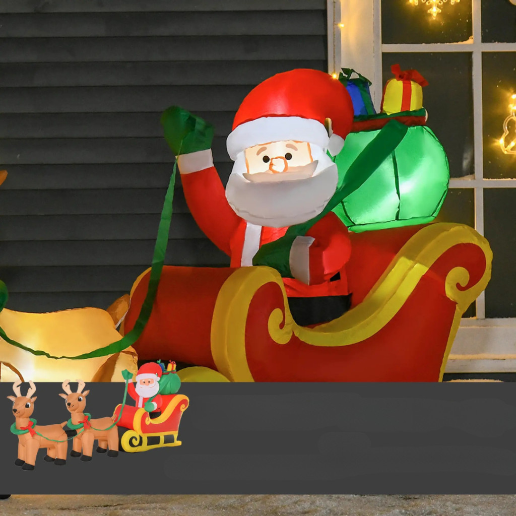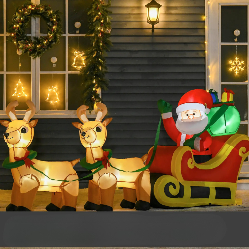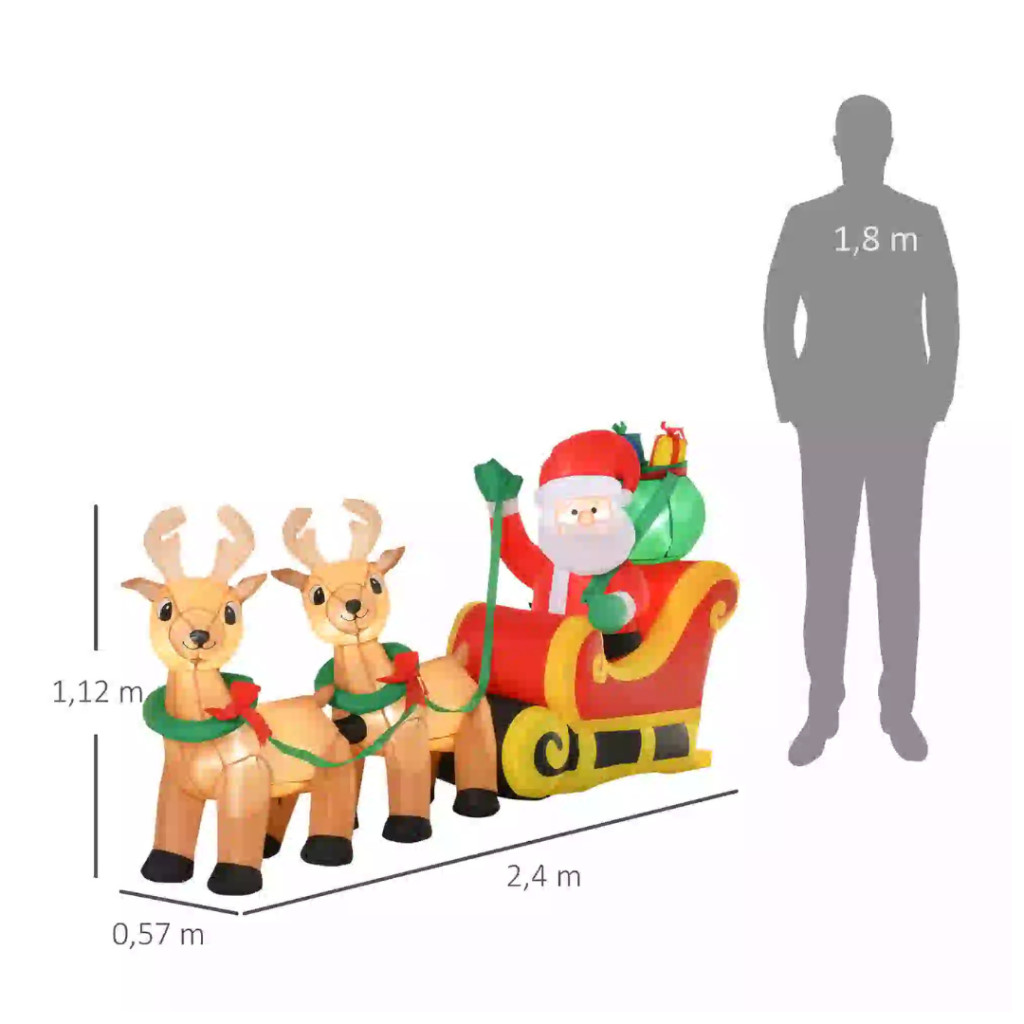 Varázsolja kertjét vagy teraszát igazi téli mesévé ezzel a látványos, 2,4 méter hosszú felfújható Mikulással, aki szánján ül, és két rénszarvas kíséretében hozza el az ünnep hangulatát.