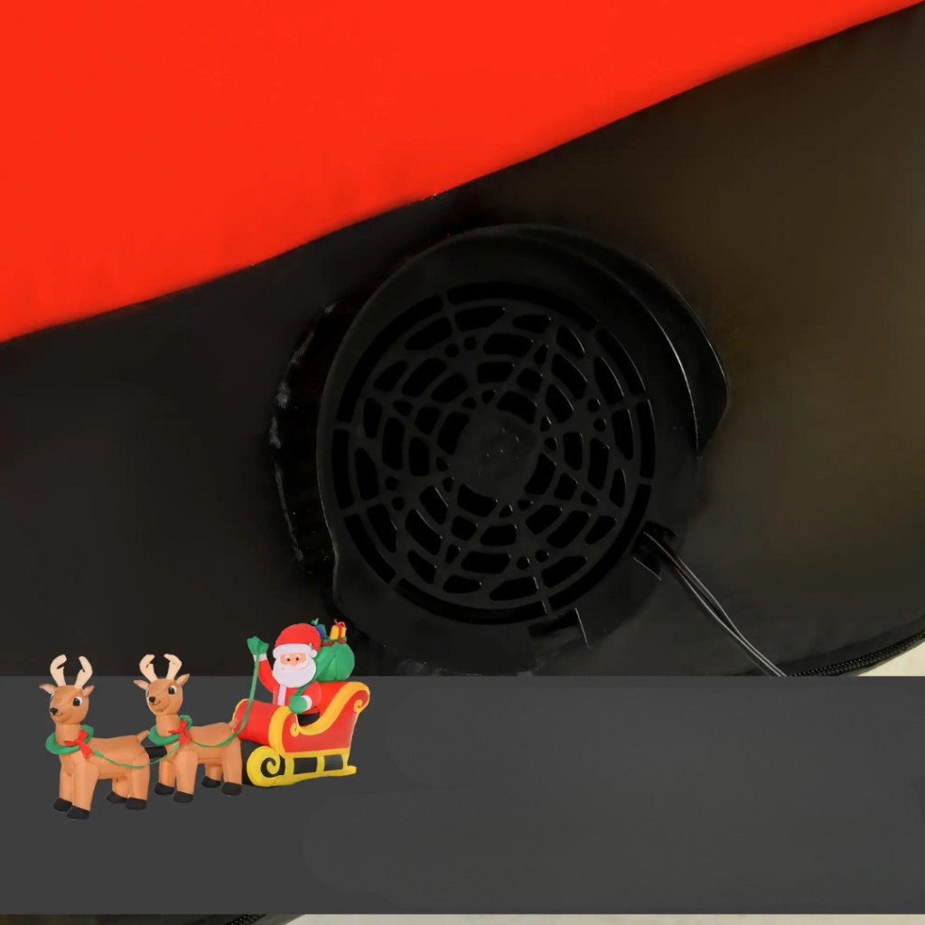 A beépített elektromos légpumpa segítségével a Mikulás néhány perc alatt automatikusan felfújódik.