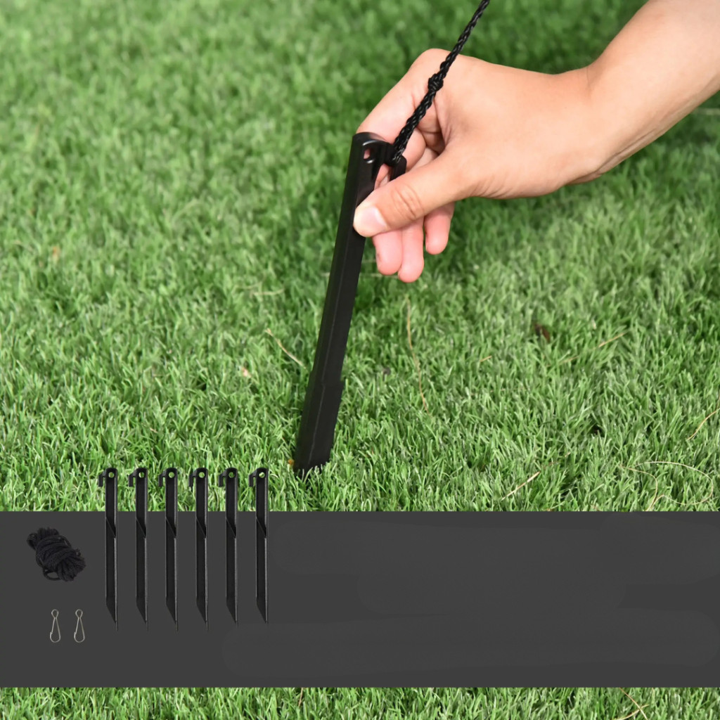 A csomagban található 6 földhorgony tüske, 2 rögzítőkötél és 4 homokzsák, amelyek garantálják, hogy a Mikulás szánjával együtt stabilan álljon még szeles időben is.