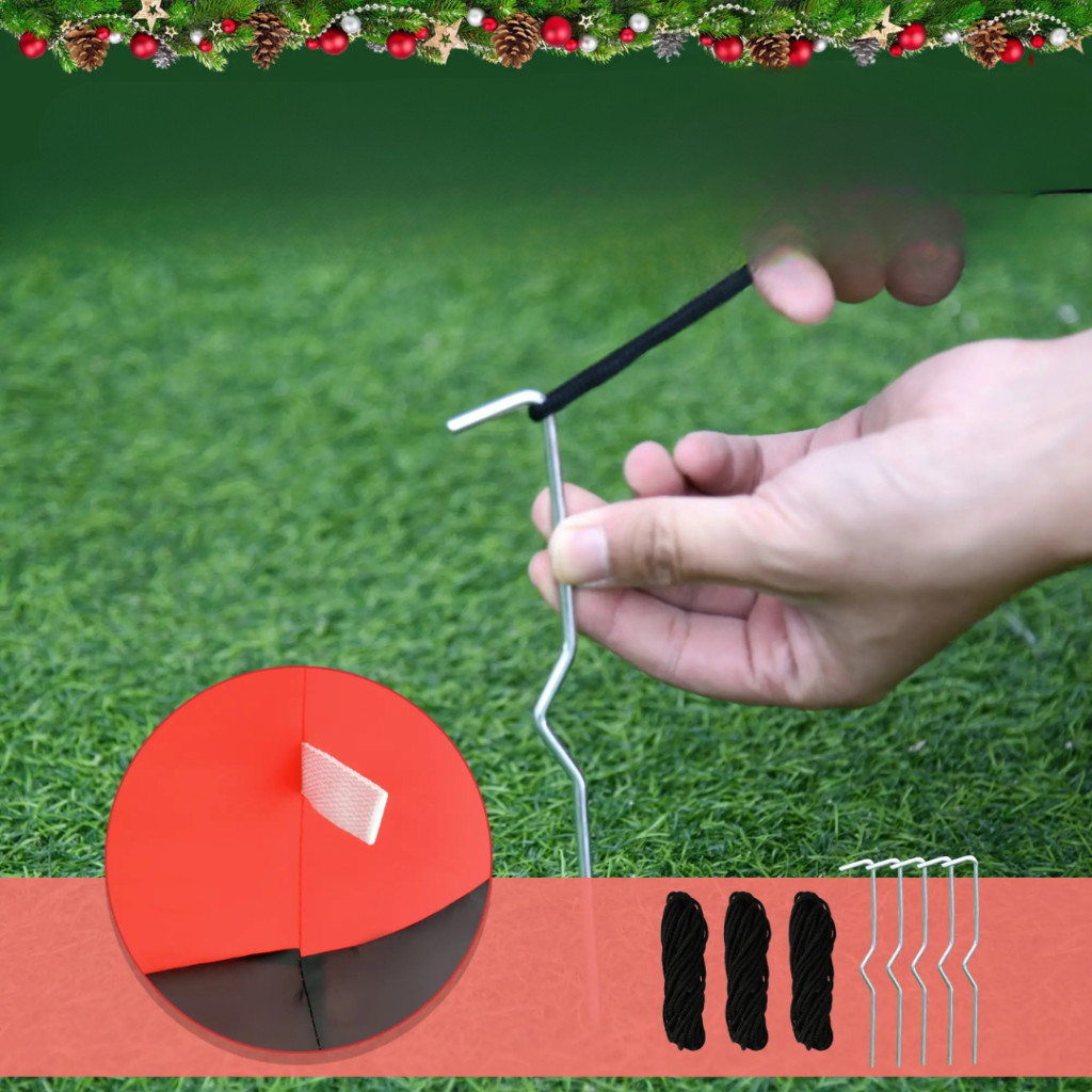 A csomagban található 3 rögzítőkötél, 5 földhorgony tüske, 2 homokzsák és a beépített ventilátor garantálja, hogy a Mikulás szeles időben is stabilan álljon.