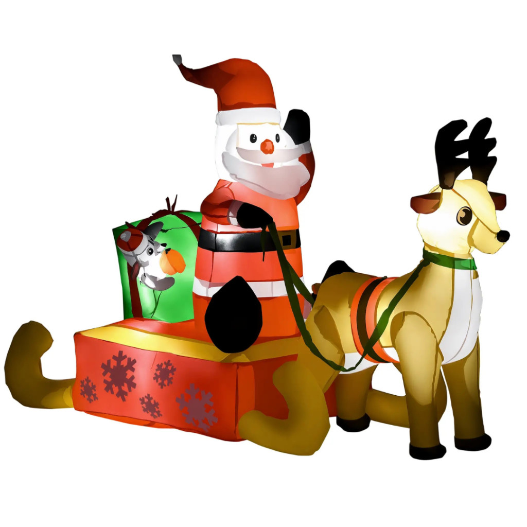 Tegye varázslatossá kertjét az ünnepi időszakban ezzel a különleges, felfújható Mikulás-szán dekorációval, amelyet rénszarvas kísér!