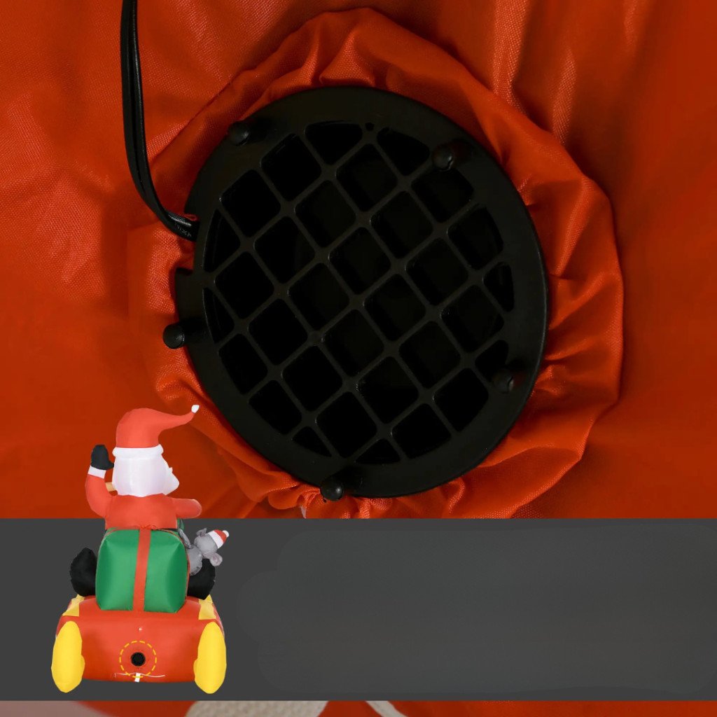A dekoráció beépített elektromos ventilátorral működik, amely néhány perc alatt automatikusan felfújja a figurát, amint a hálózathoz csatlakoztatja.