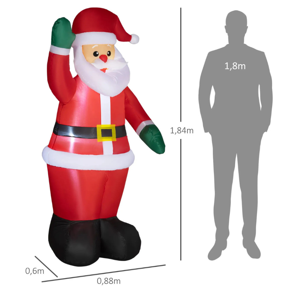 Felfújható Mikulás LED-világítással 184 cm magas kültéri karácsonyi dekoráció