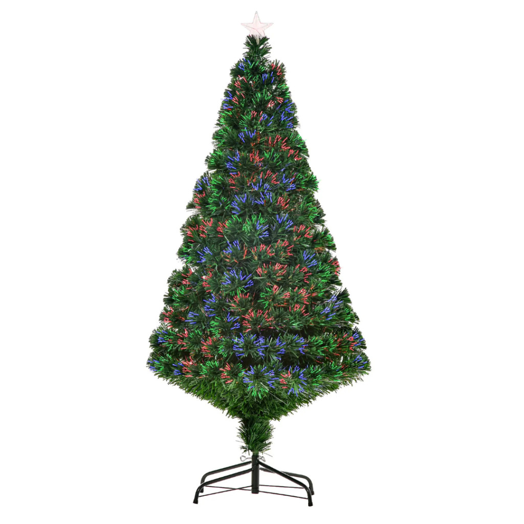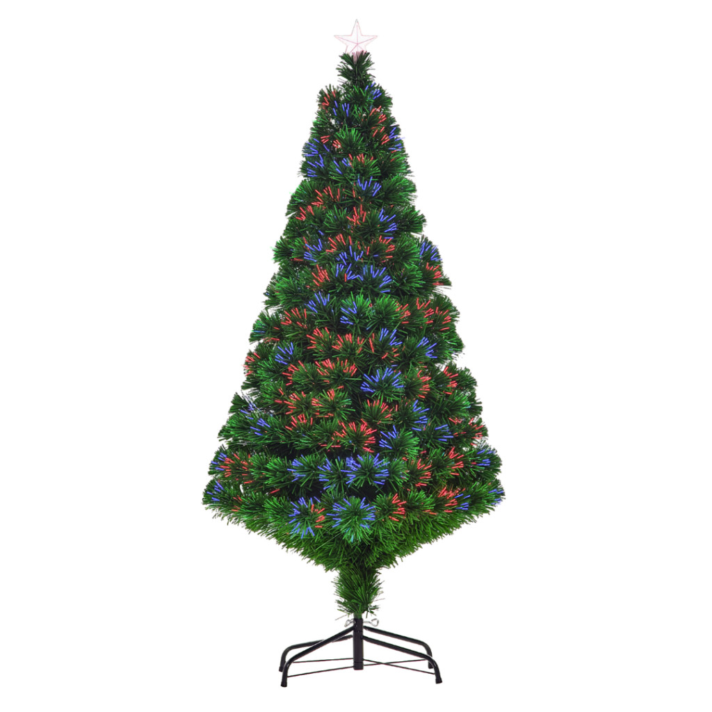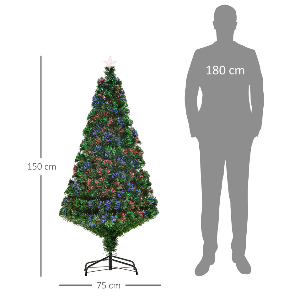 Műfenyő 150 cm magas karácsonyfa LED-es üvegszálas világítással, 180 ág, fém talppal beltéri karácsonyfa