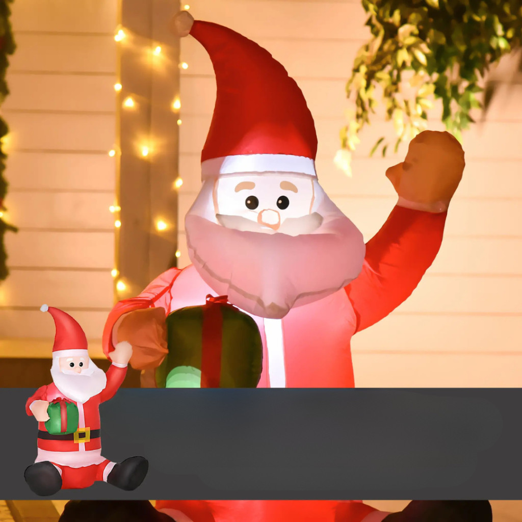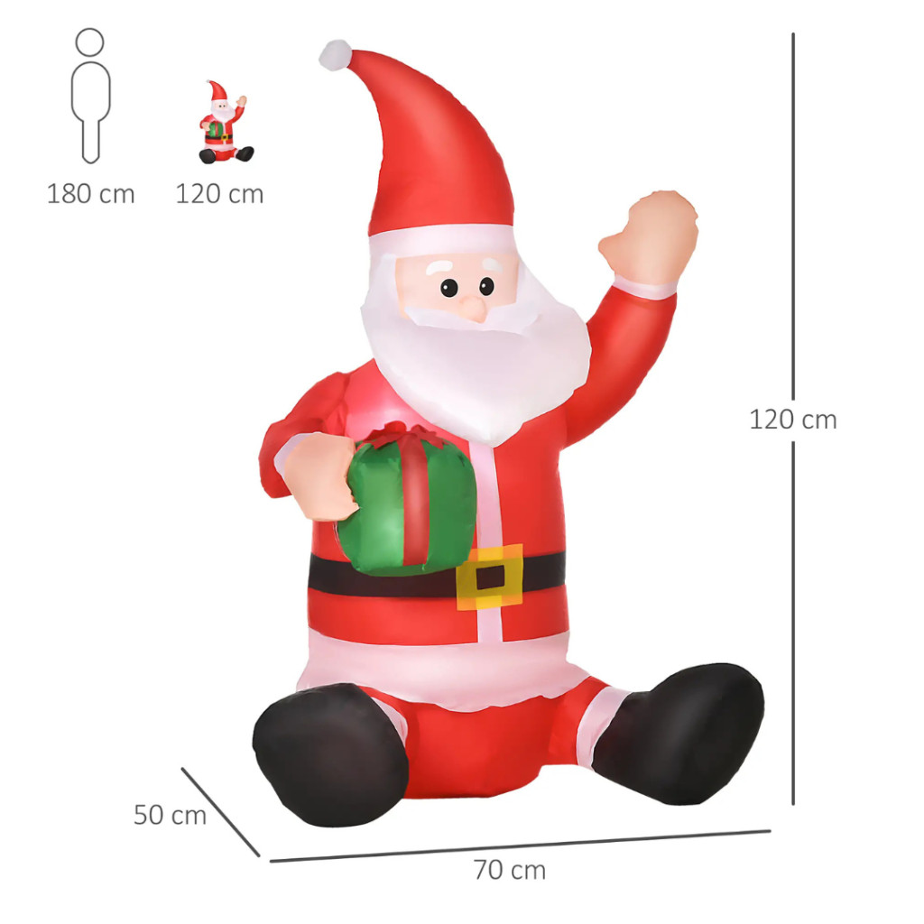 Ünnepelje a karácsonyt igazi téli varázslattal! Ez a 1,2 méter magas, önfelfújó Mikulás figura ajándékcsomaggal díszítve meghitt, vidám és látványos karácsonyi hangulatot teremt otthonában vagy kertjében. Az integrált LED világítás ragyogó fényt biztosít, így ez a Mikulás éjjel is a figyelem középpontjába kerül.