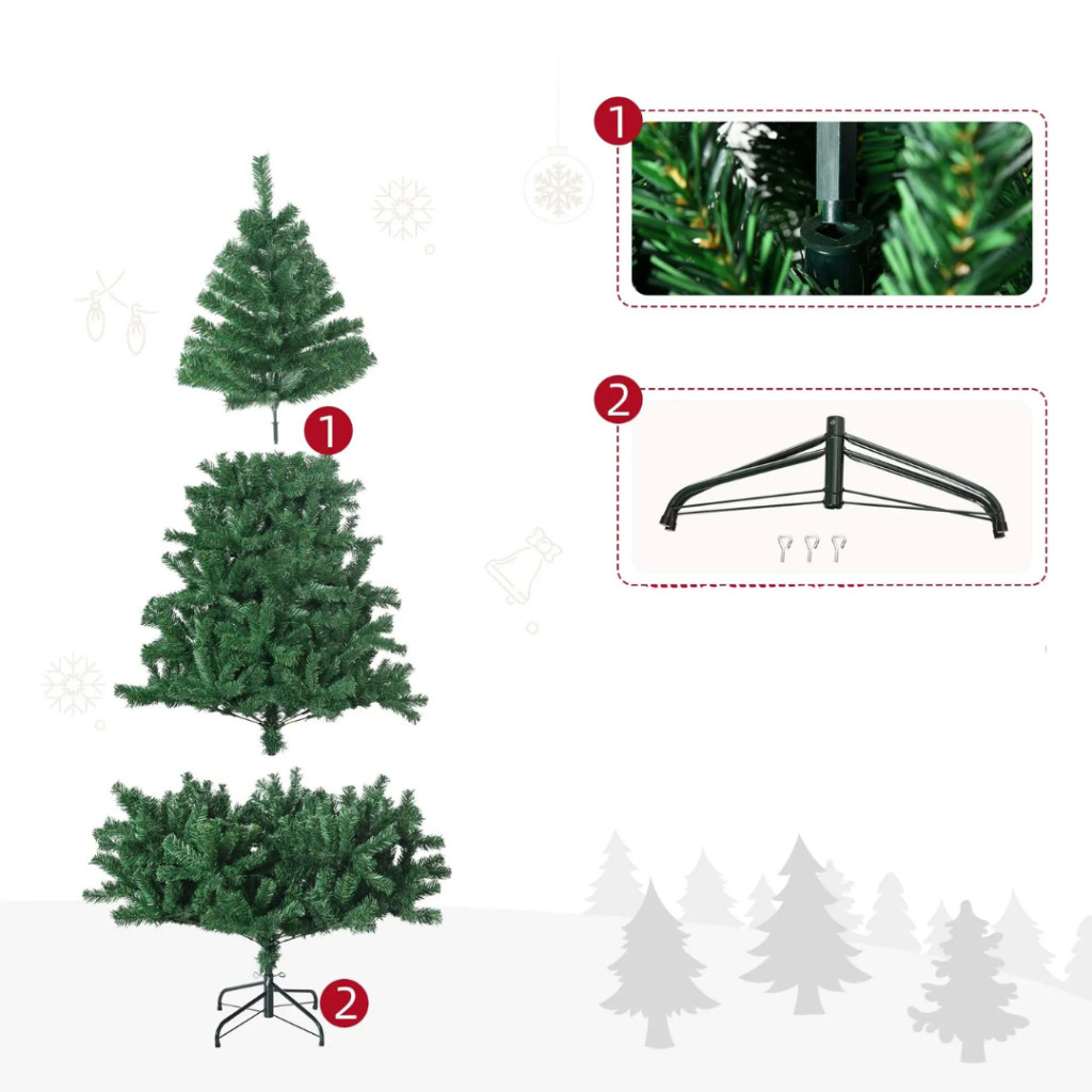 Műfenyő 180 cm beltéri karácsonyfa 1000 ággal, fém talppal, zöld színben