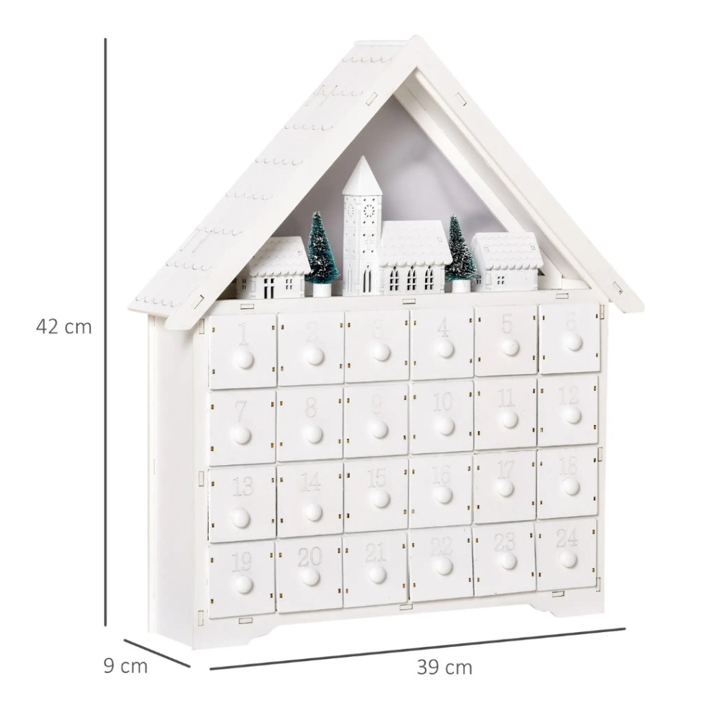 Fa adventi naptár LED-világítással 24 fiókos karácsonyi örök naptár 39x9x42 cm, fehér-zöld