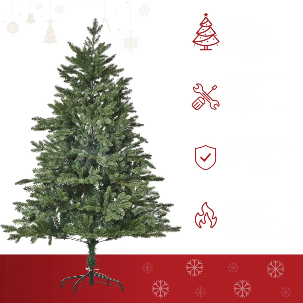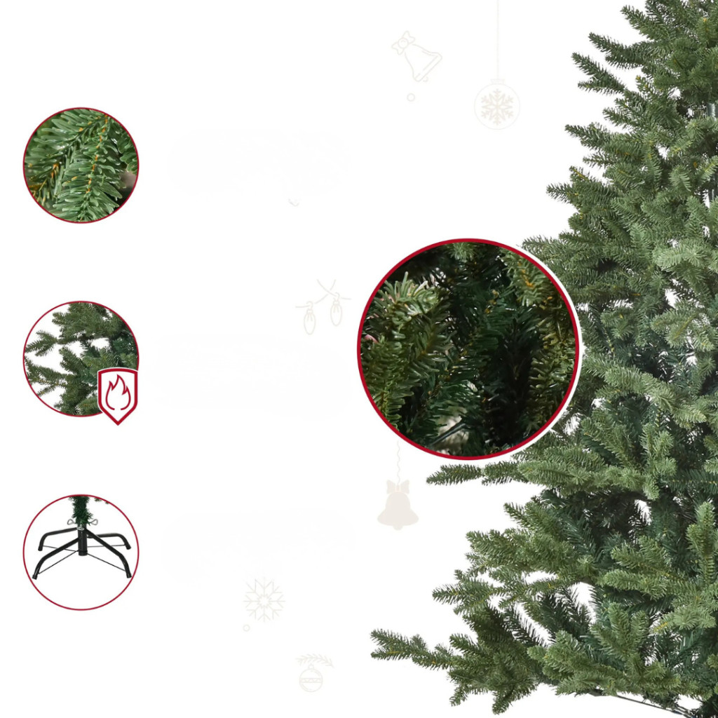 Műfenyő 150 cm magas, élethű karácsonyfa 444 ág, 3 féle levélforma, stabil fém talppal